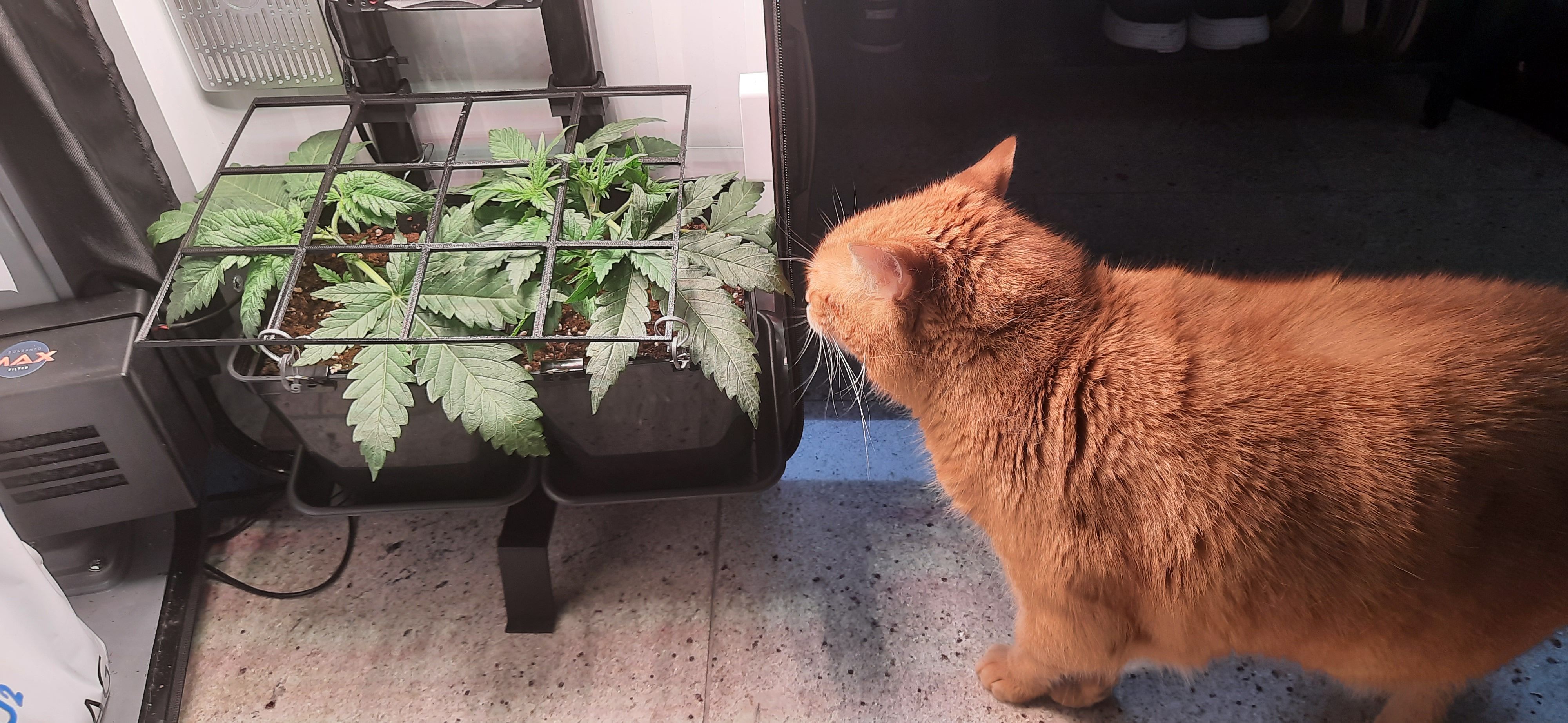 Gitter neu ausgerichtet, Blütenstände neu angeordnet und angebunden um Positionen zum Licht zu verbessern.