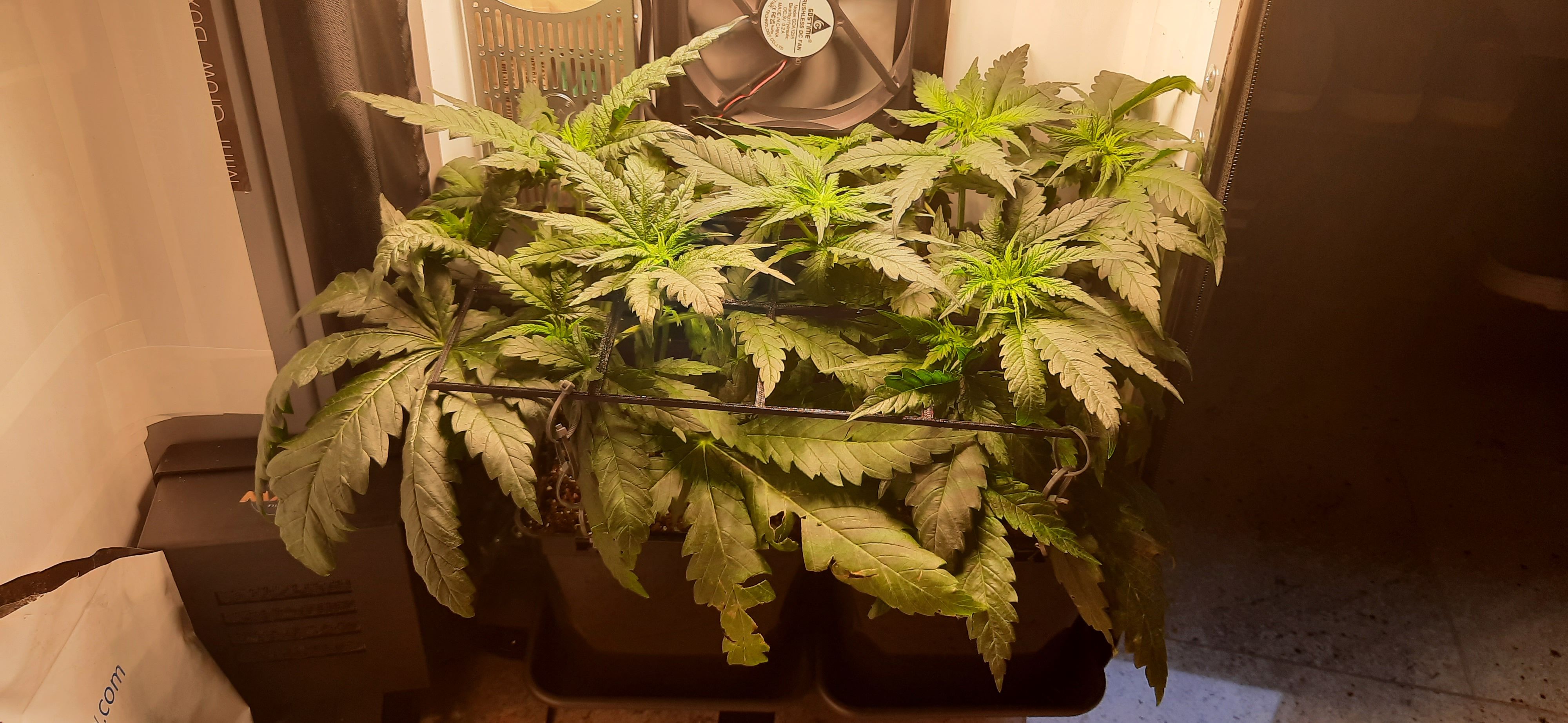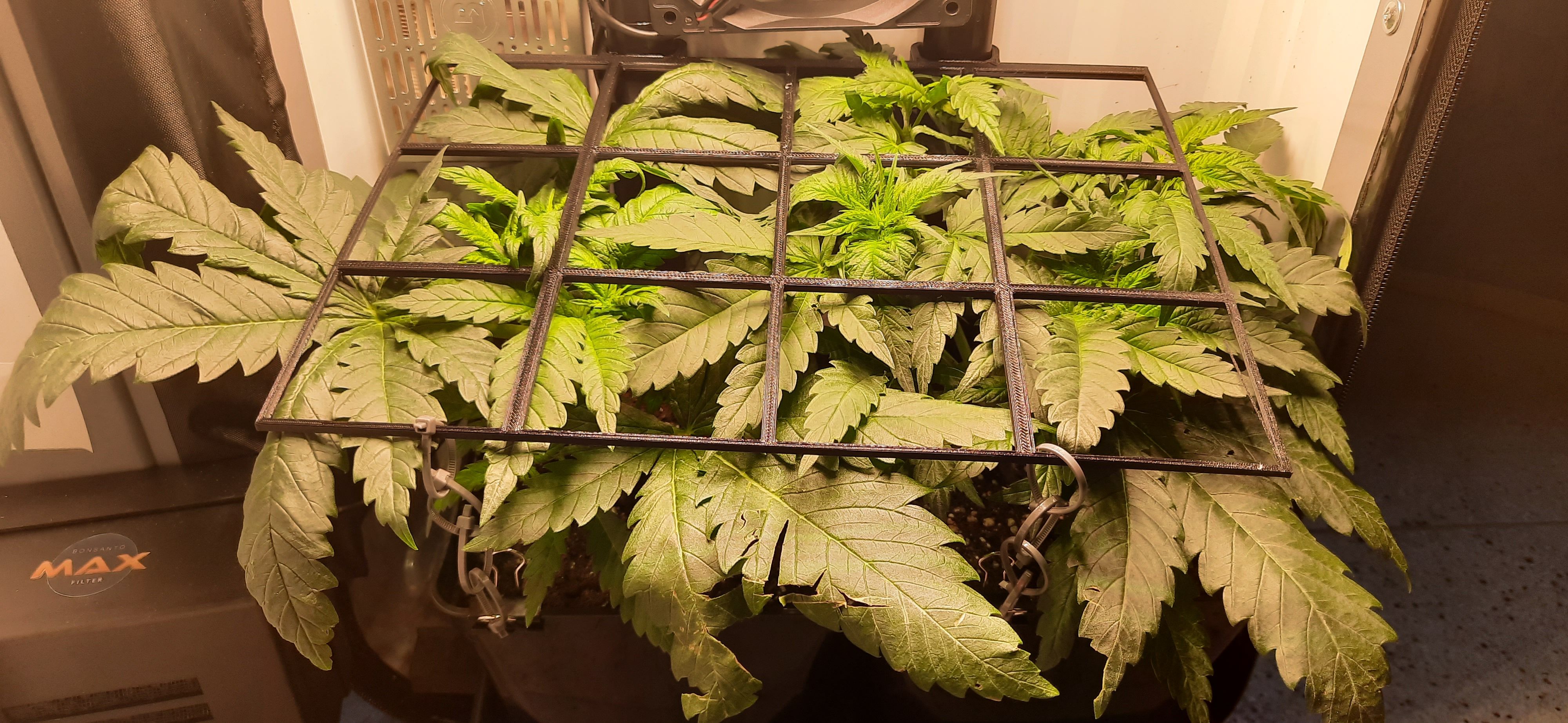 Leichtes LST am SCROG-Gitter um Höhenwuchs etwas zu dämpfen