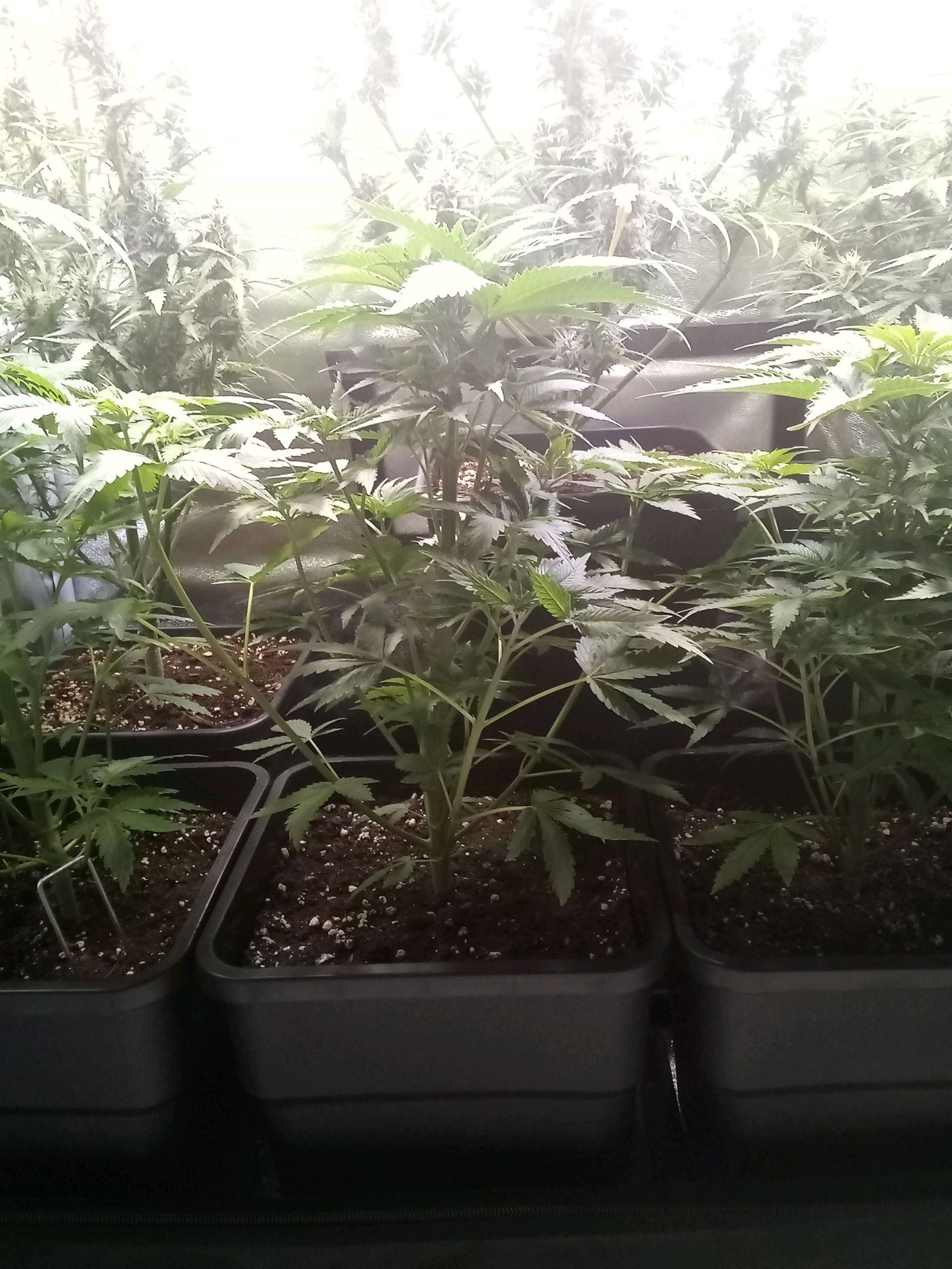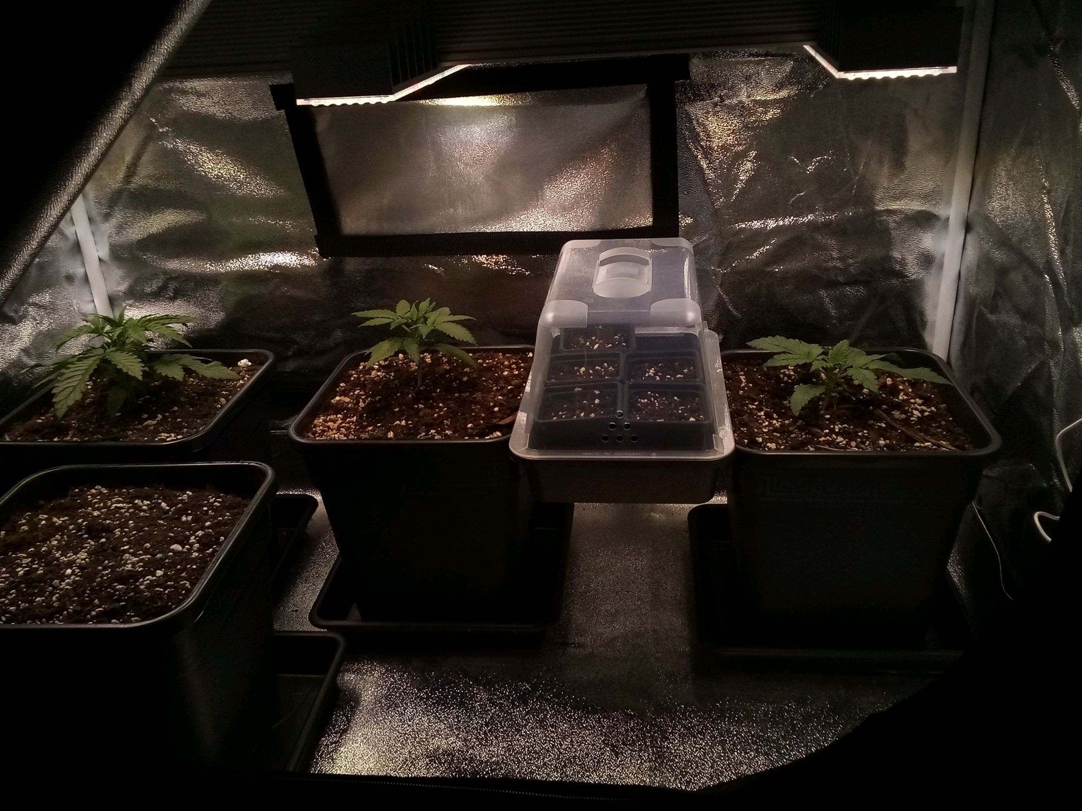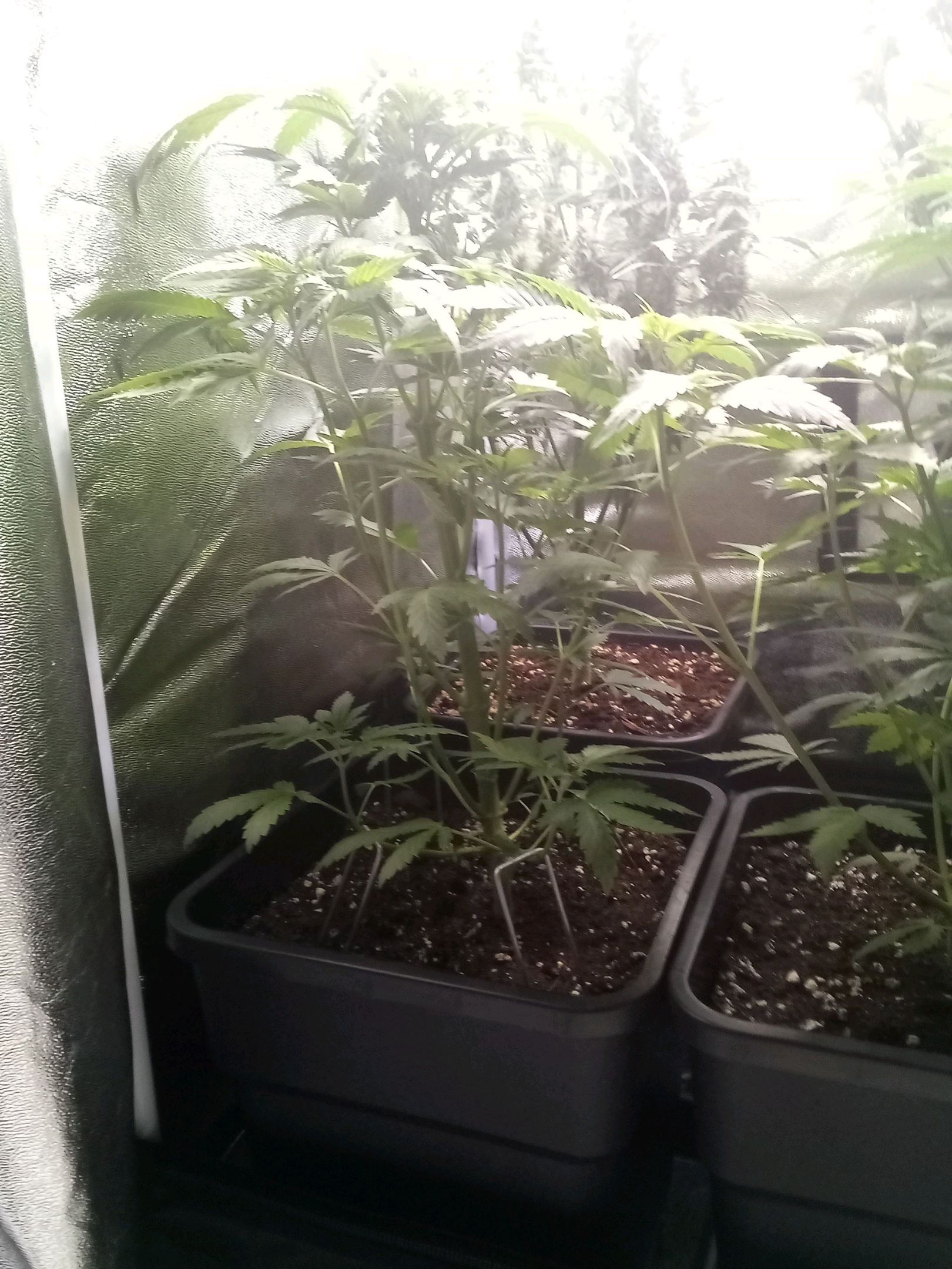 3 Ladys umgetopft in jeweils 11 Liter Plagron All-Mix, die vierte war schon in einem 9 Liter Topf mit BioBizz Light-Mix