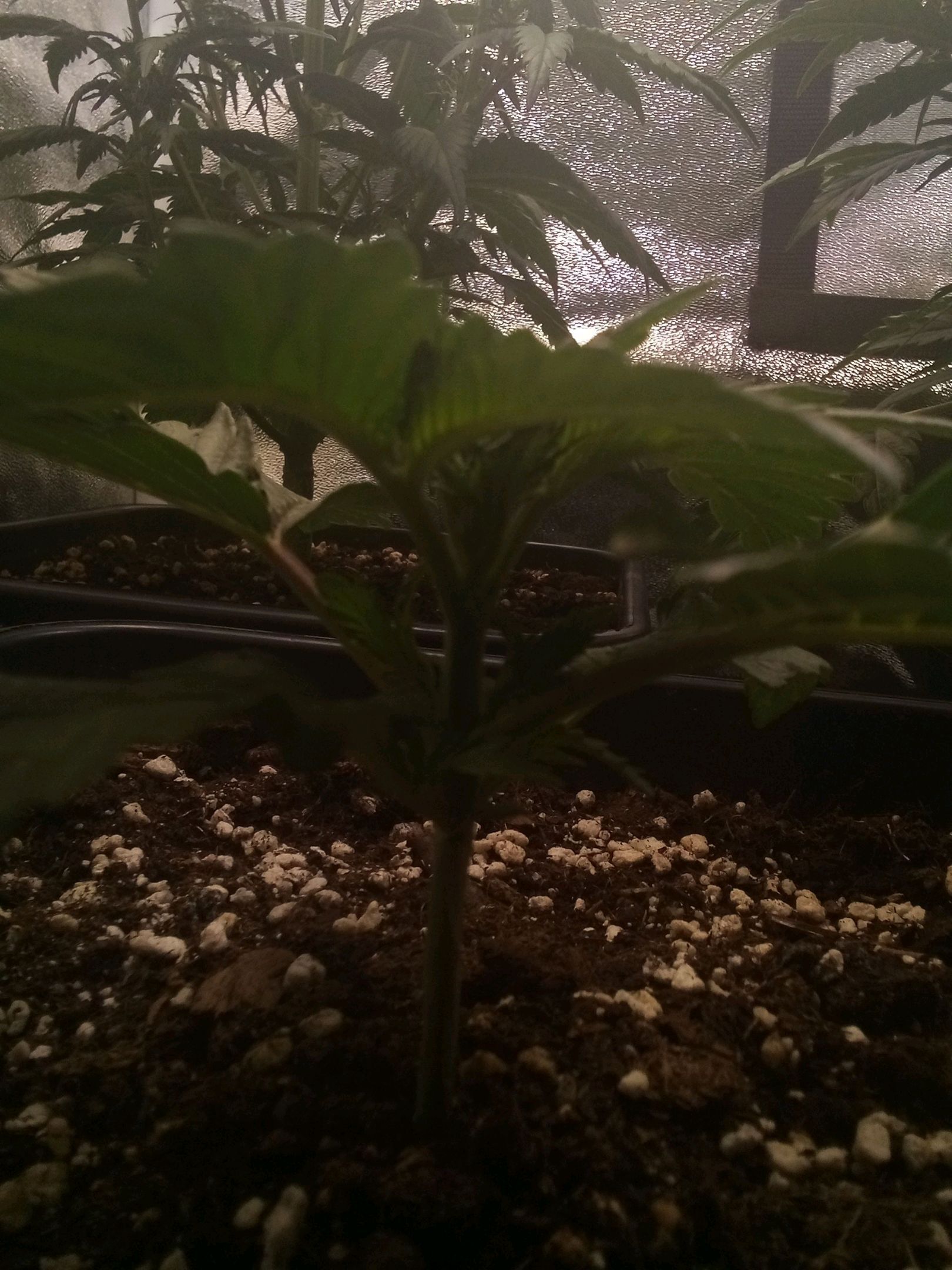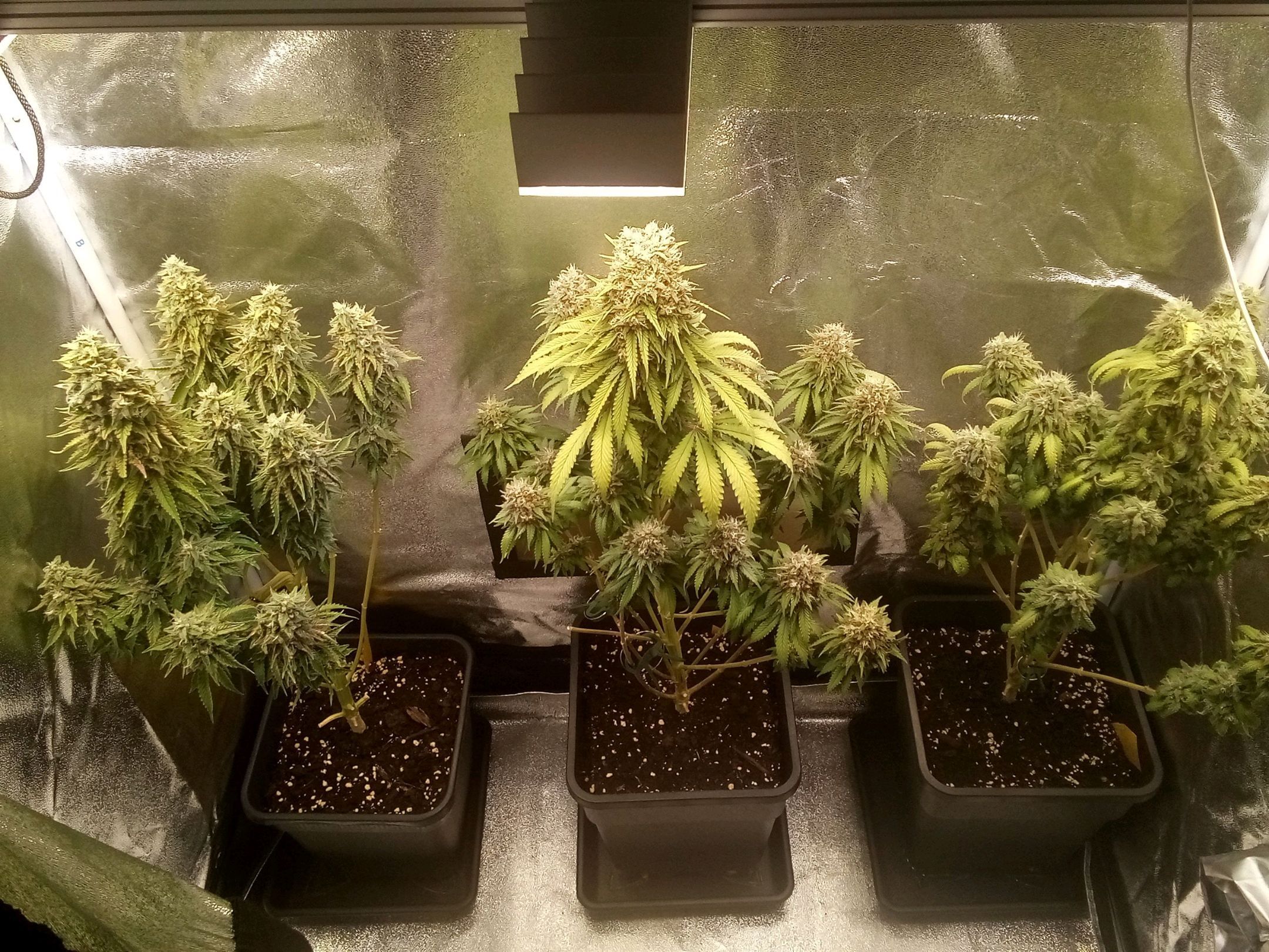 Gefüttert wird nur die Lady in den 9 Liter Topf mit BioBizz Light -Mix. Die anderen 3 in den 11 Liter Töpfen mit Plagron All-Mix bekommen nichts, auch kein Wasser.