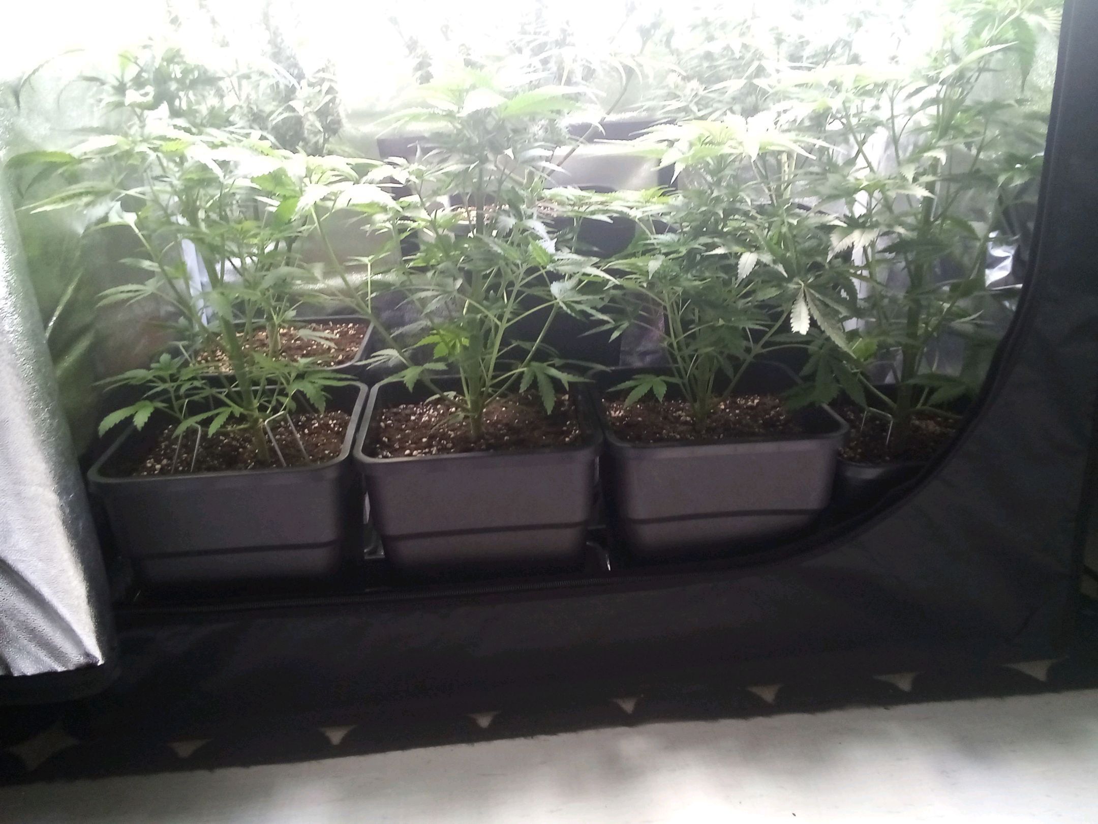 Nur die erste, die in dem 9 Liter Light -Mix, bekommt Dünger. Die anderen 3 in den 11 Liter Plagron All-Mix bekommen nur Wasser und das auch nur 1-2 Mal in der Woche.