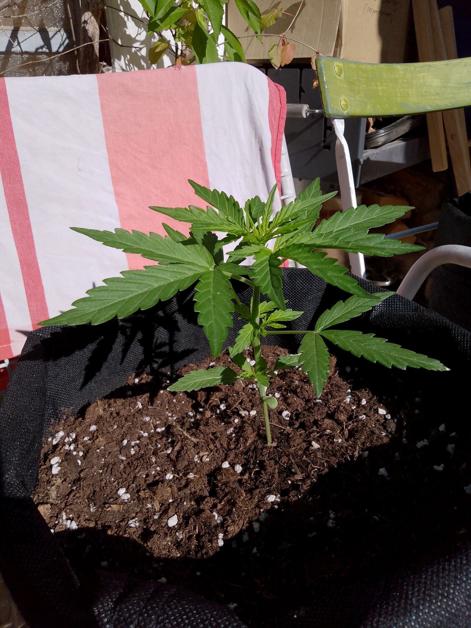 Transplanted my Sweet one into a 19L cotton pot today... I hope she'll be doing fine in there😱
