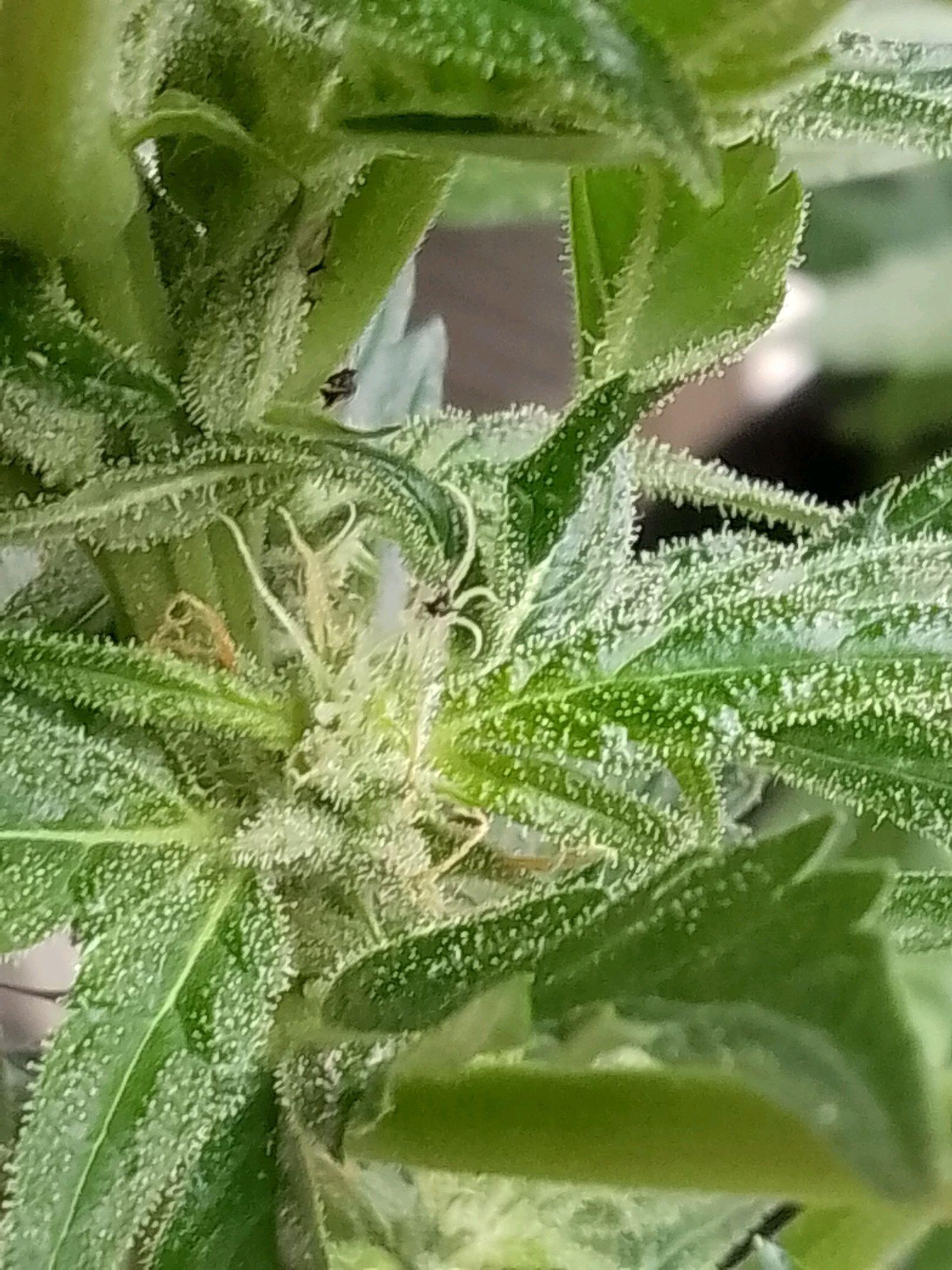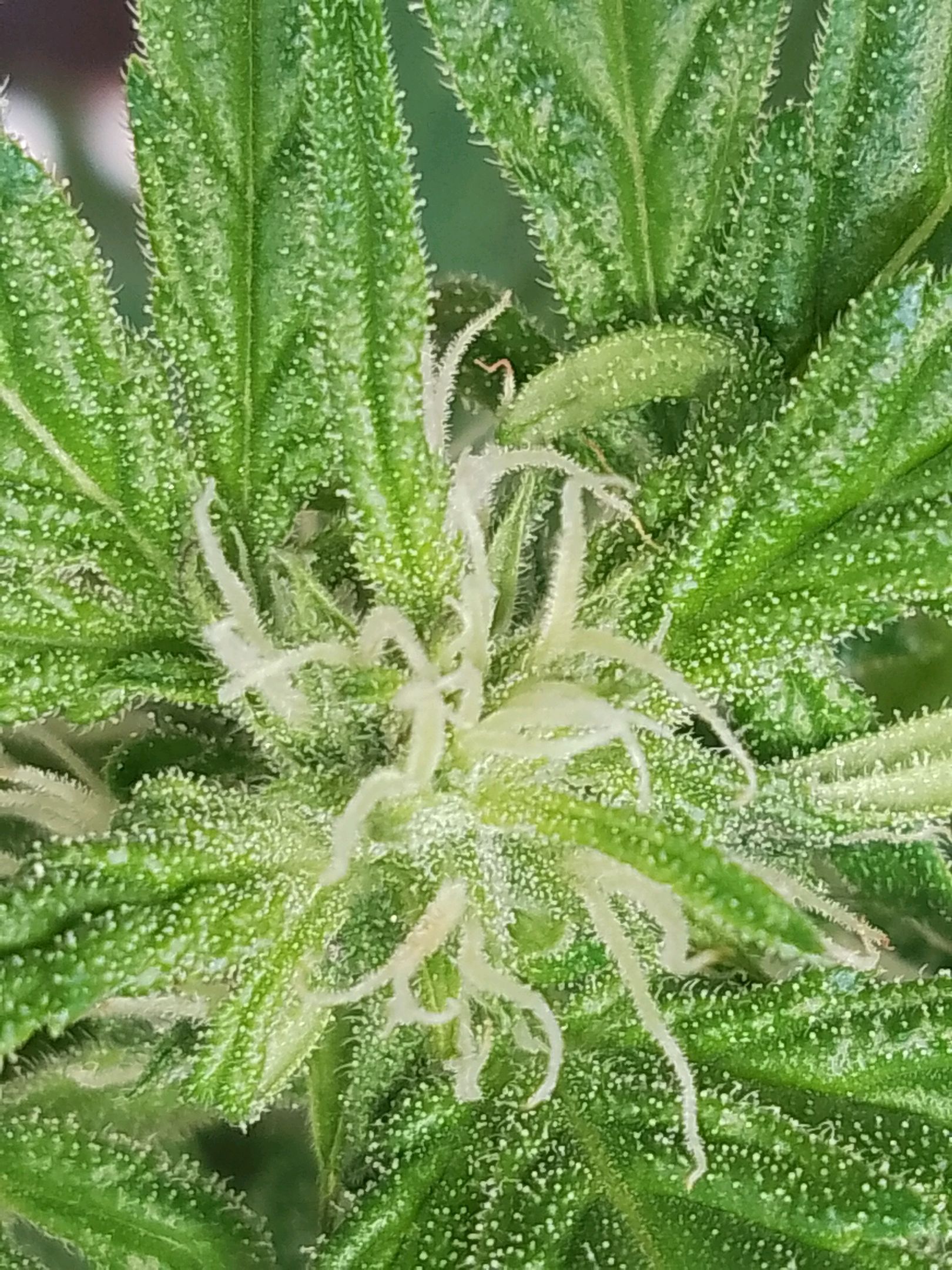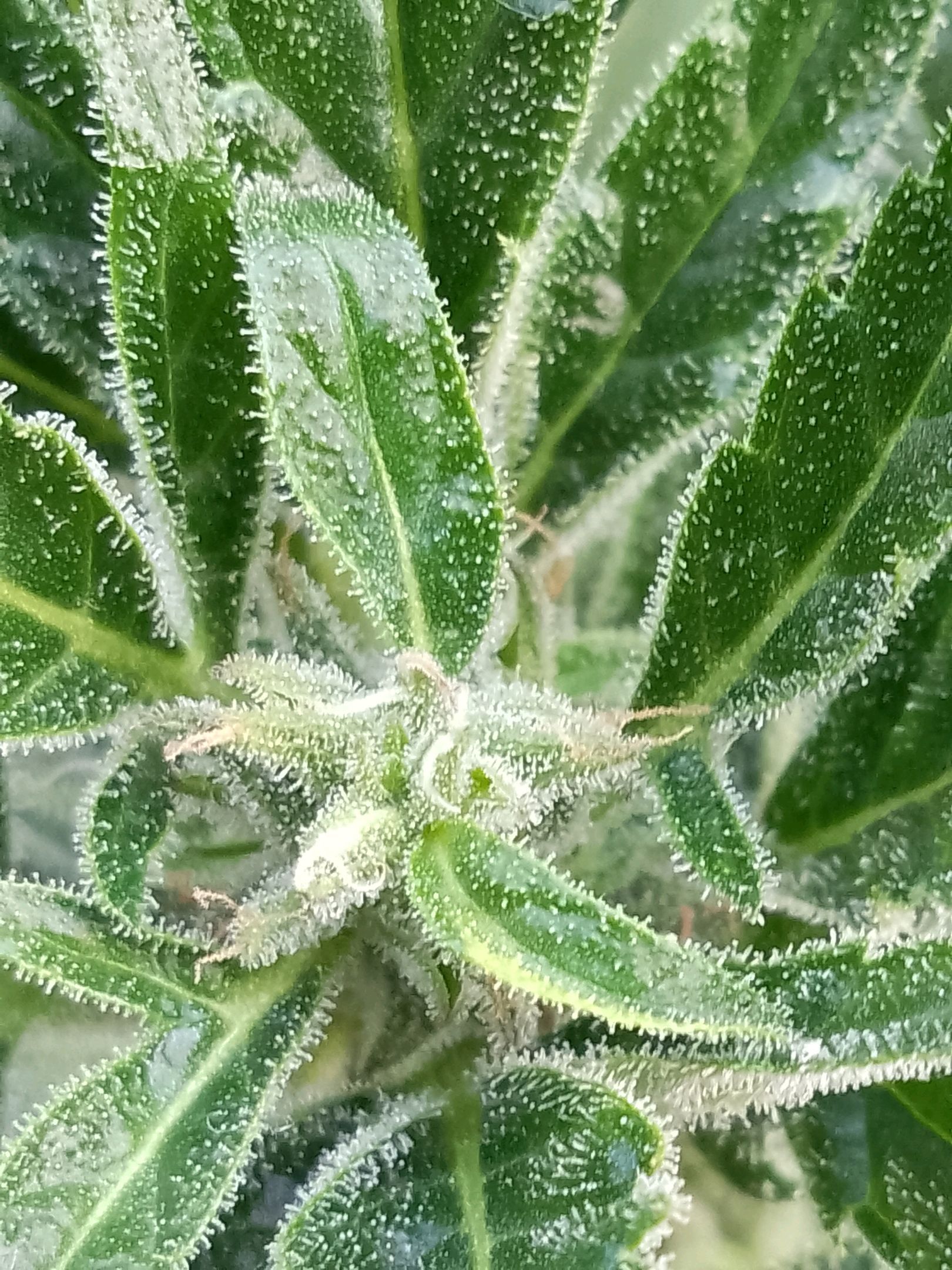 Holy moly the Trichome production is getting out of hand😱😱 the plant is getting frosty af and I love it! So excited for the flavor!!!❤️❤️❤️