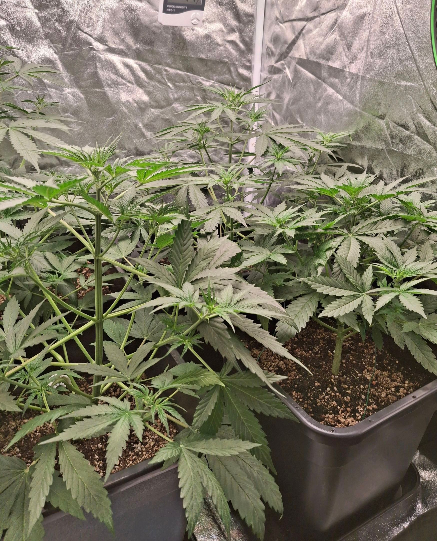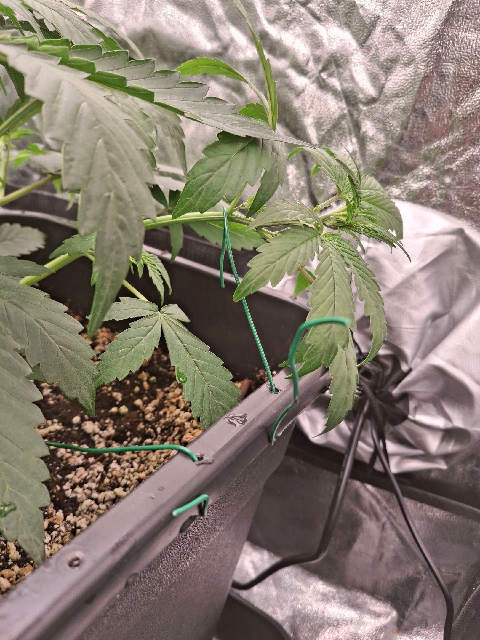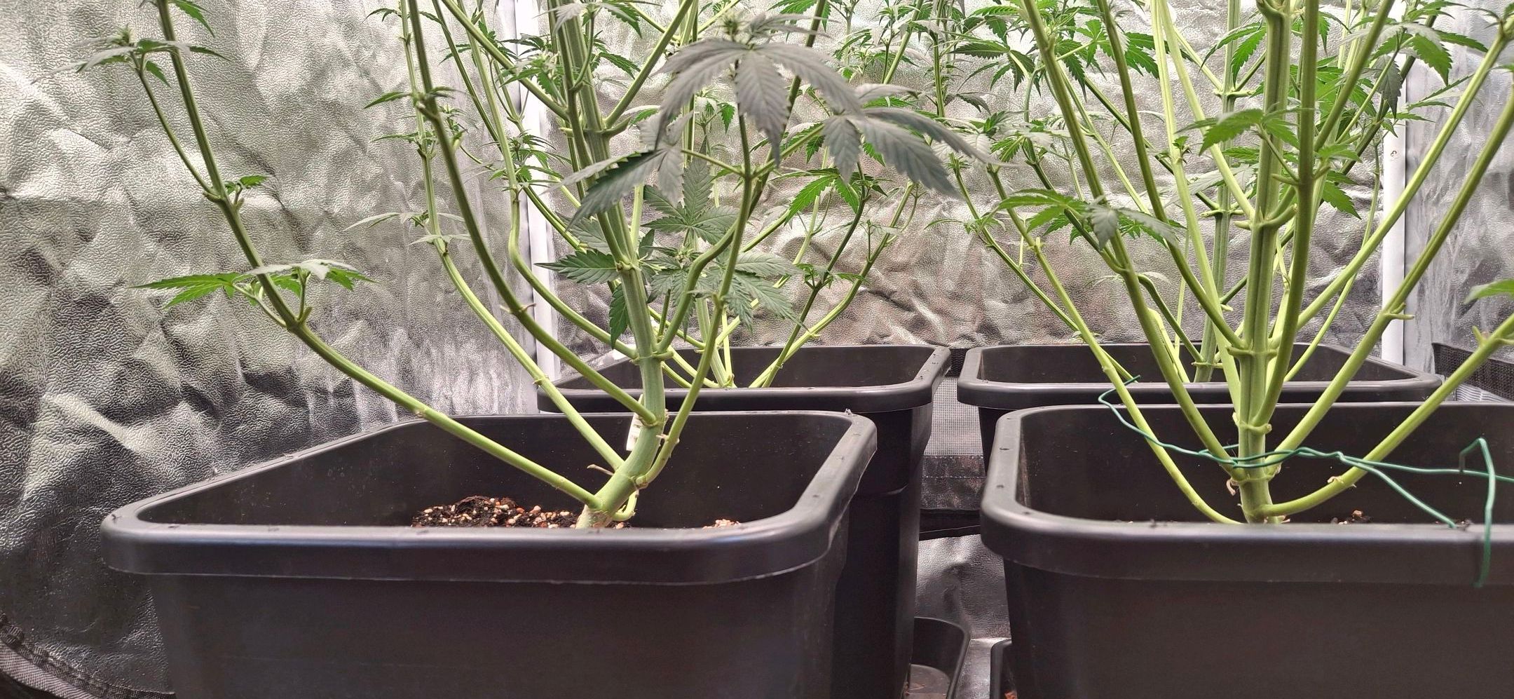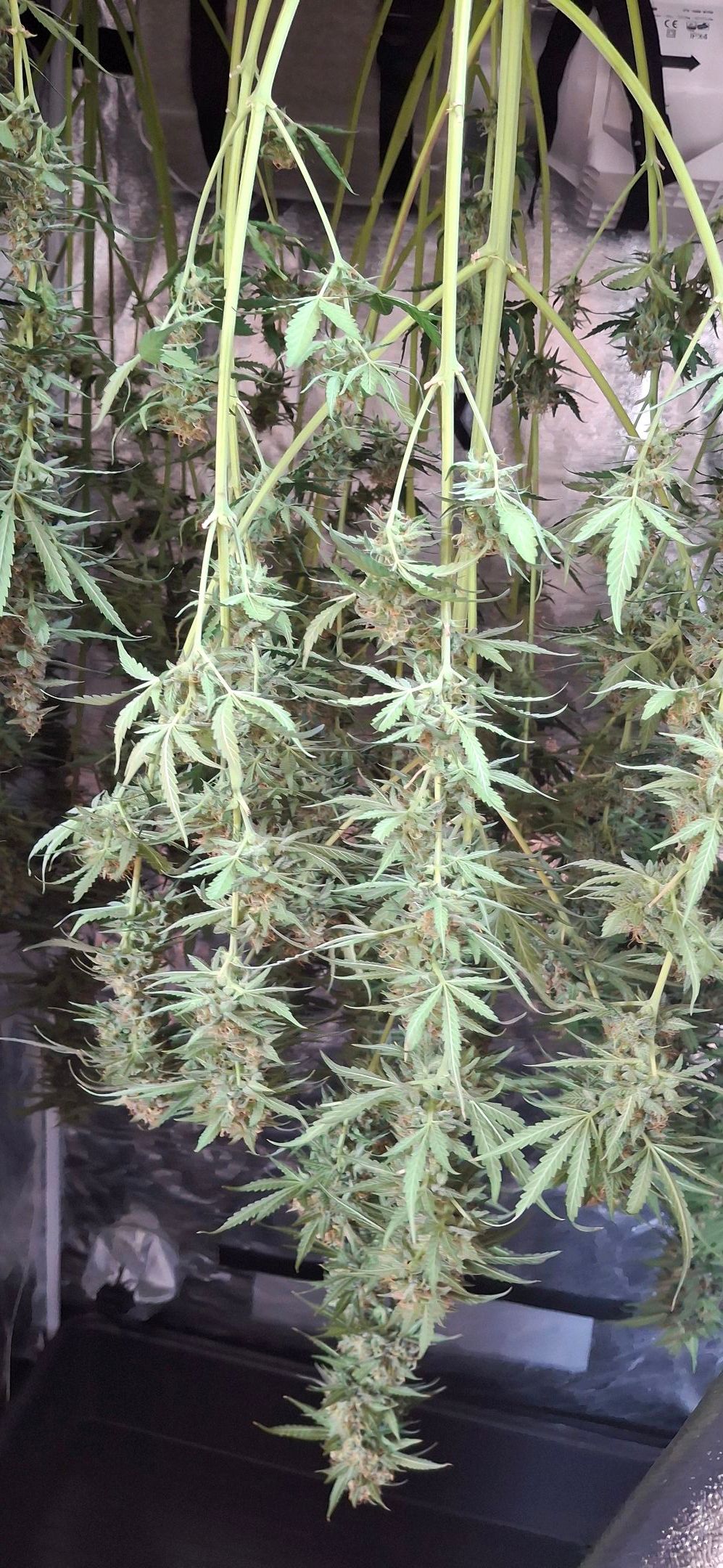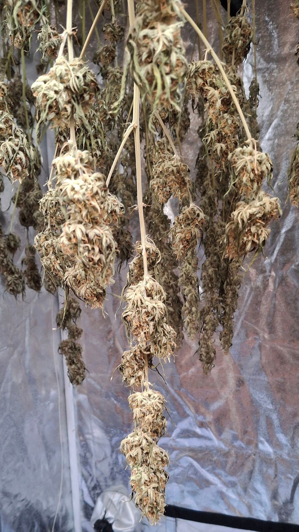 Nach 24h abgeschnitten, große Blätter entfernt und für die nächste Woche zum trocknen im Abluftzelt aufgehängt
