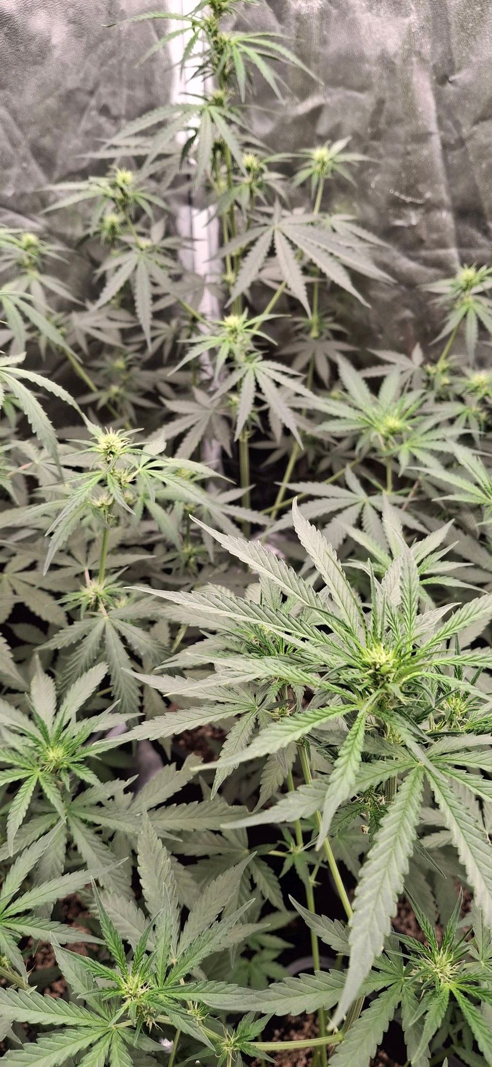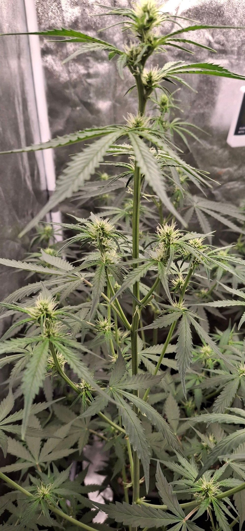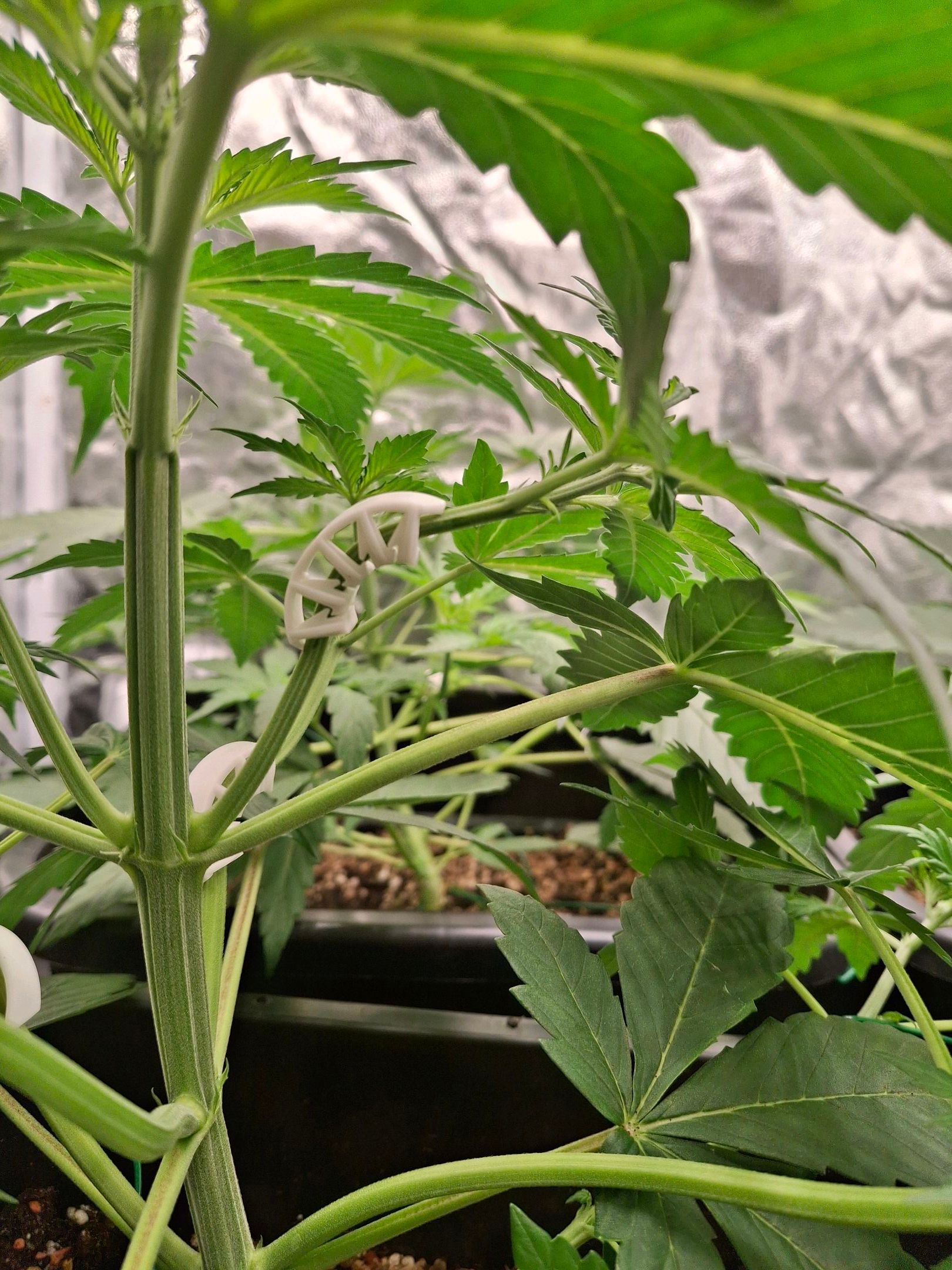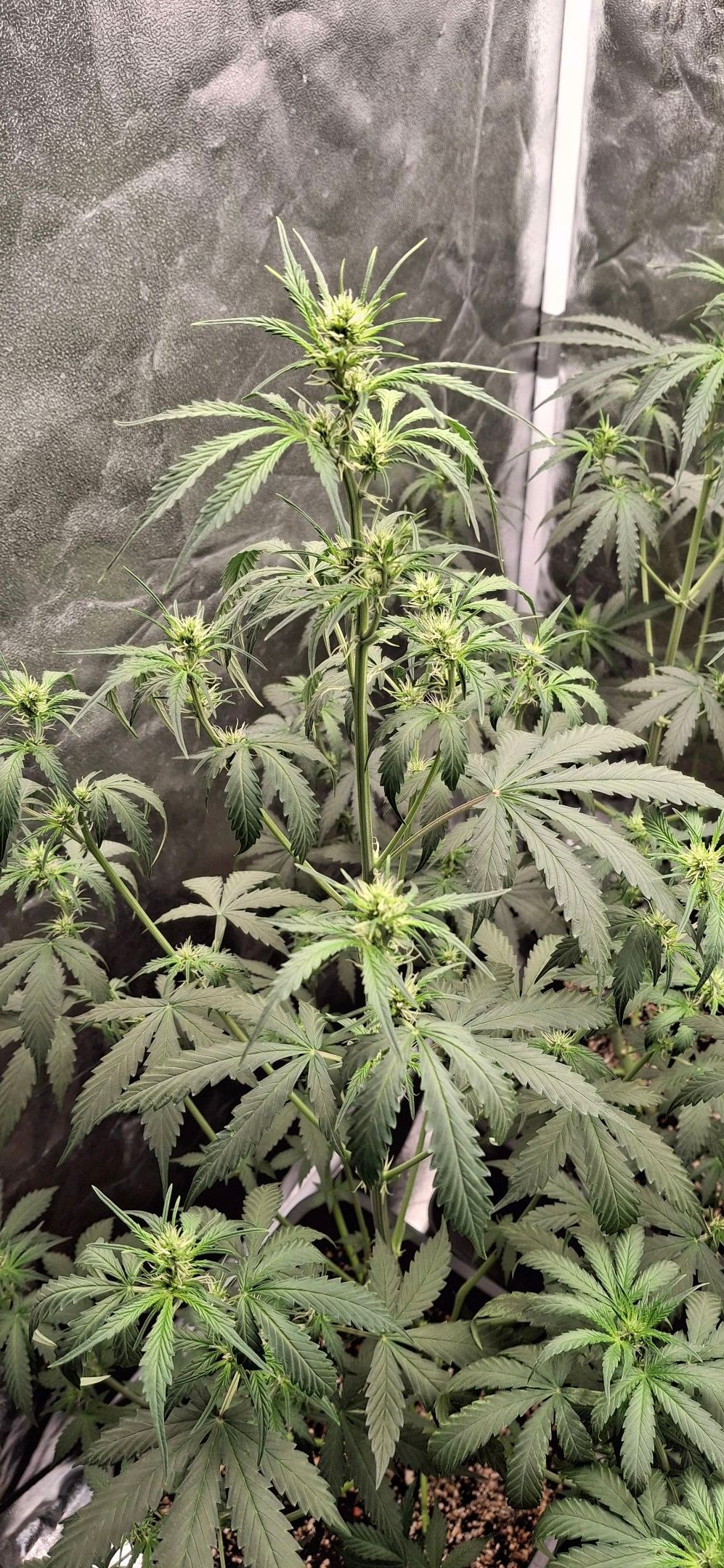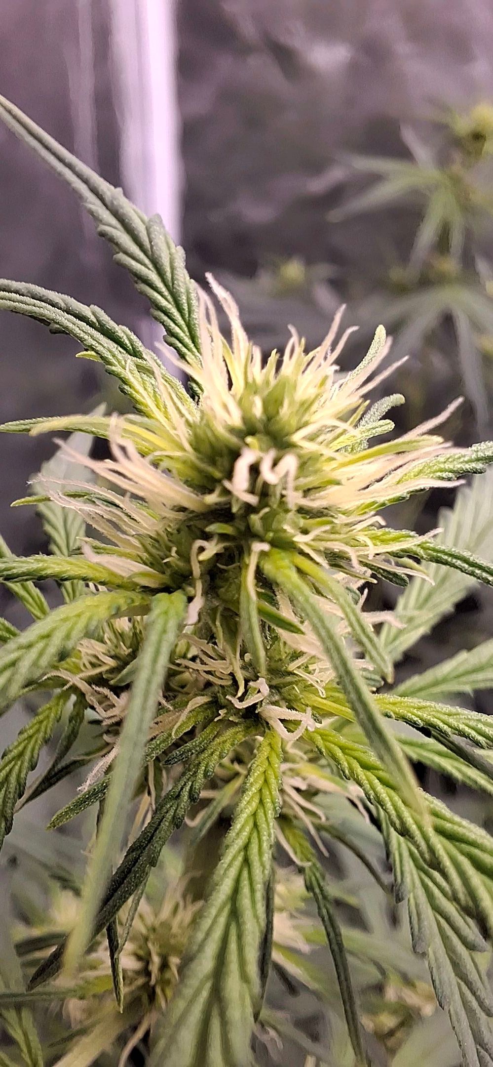 Nach 24h abgeschnitten, große Blätter entfernt und für die nächste Woche zum trocknen im Abluftzelt aufgehängt