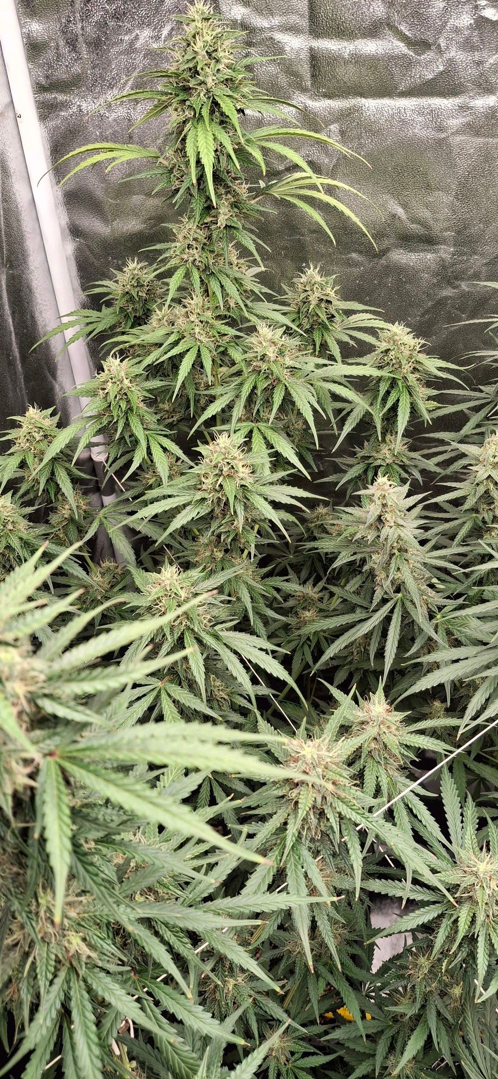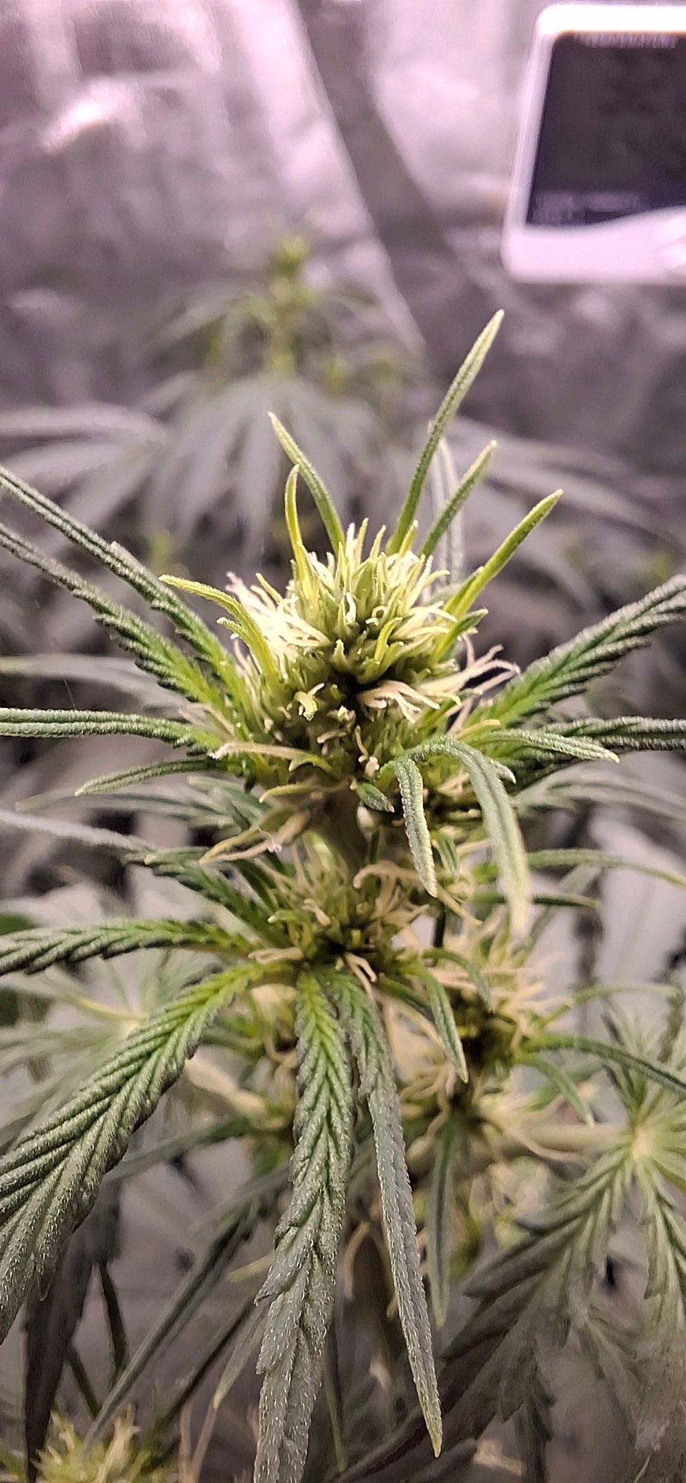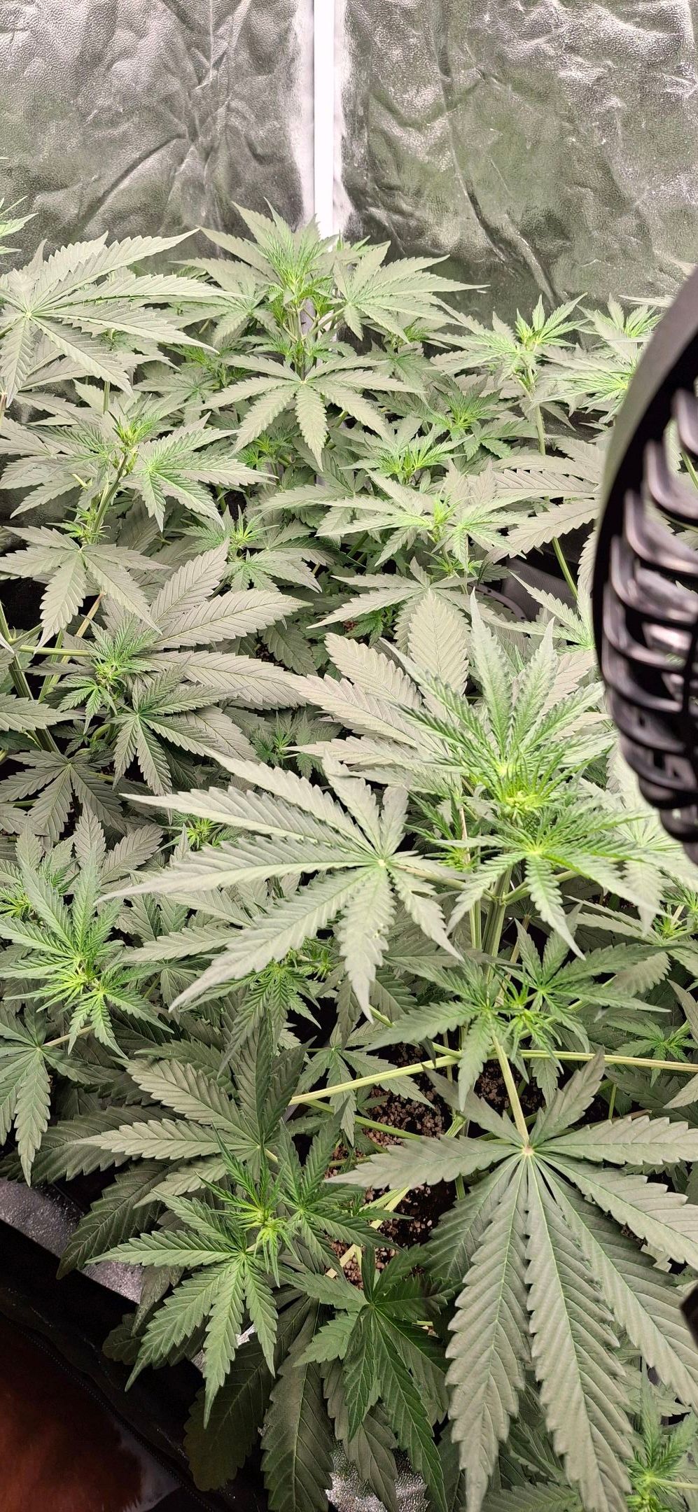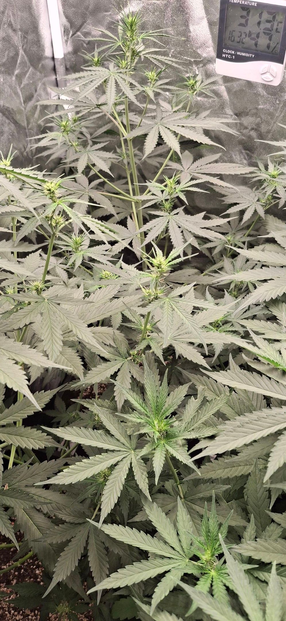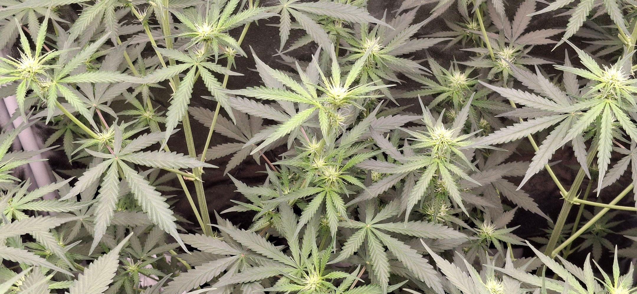 Nach 24h abgeschnitten, große Blätter entfernt und für die nächste Woche zum trocknen im Abluftzelt aufgehängt