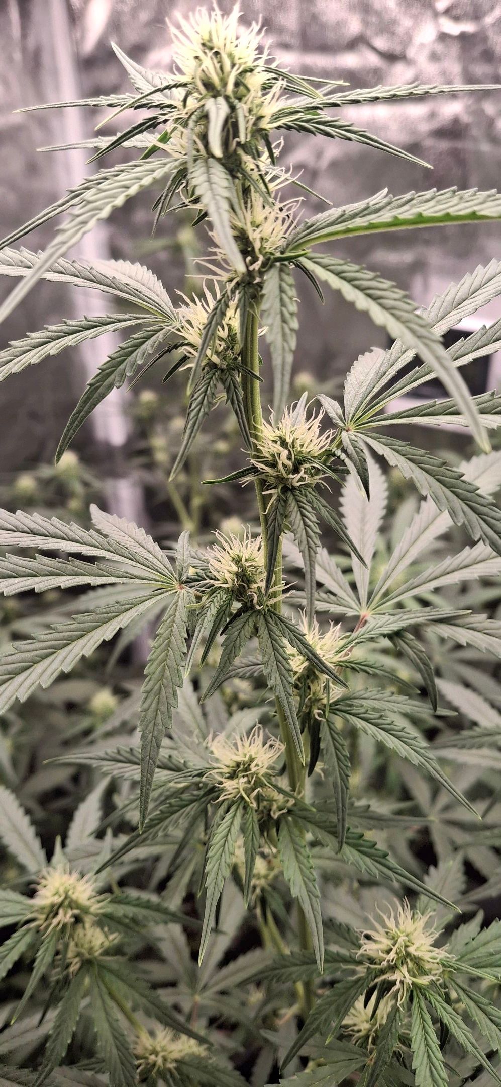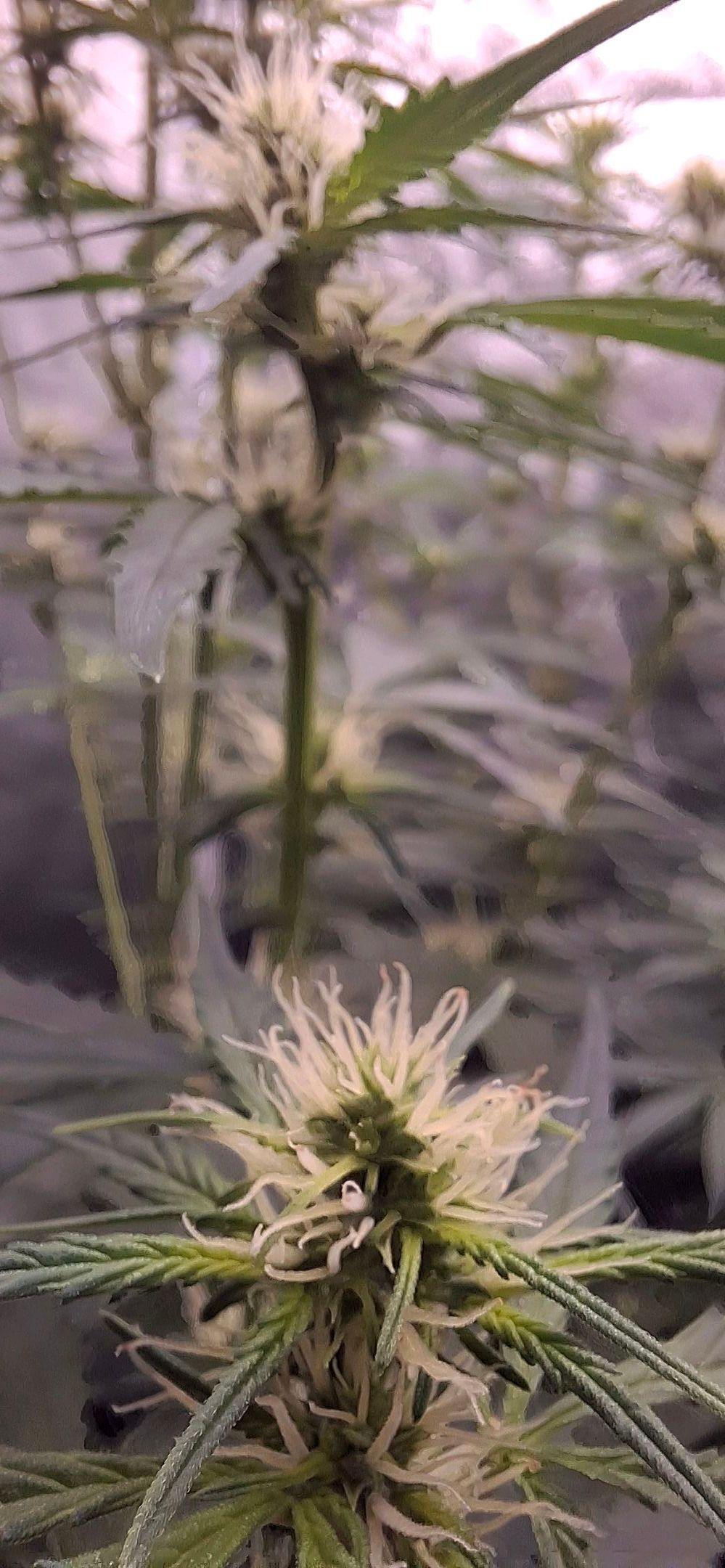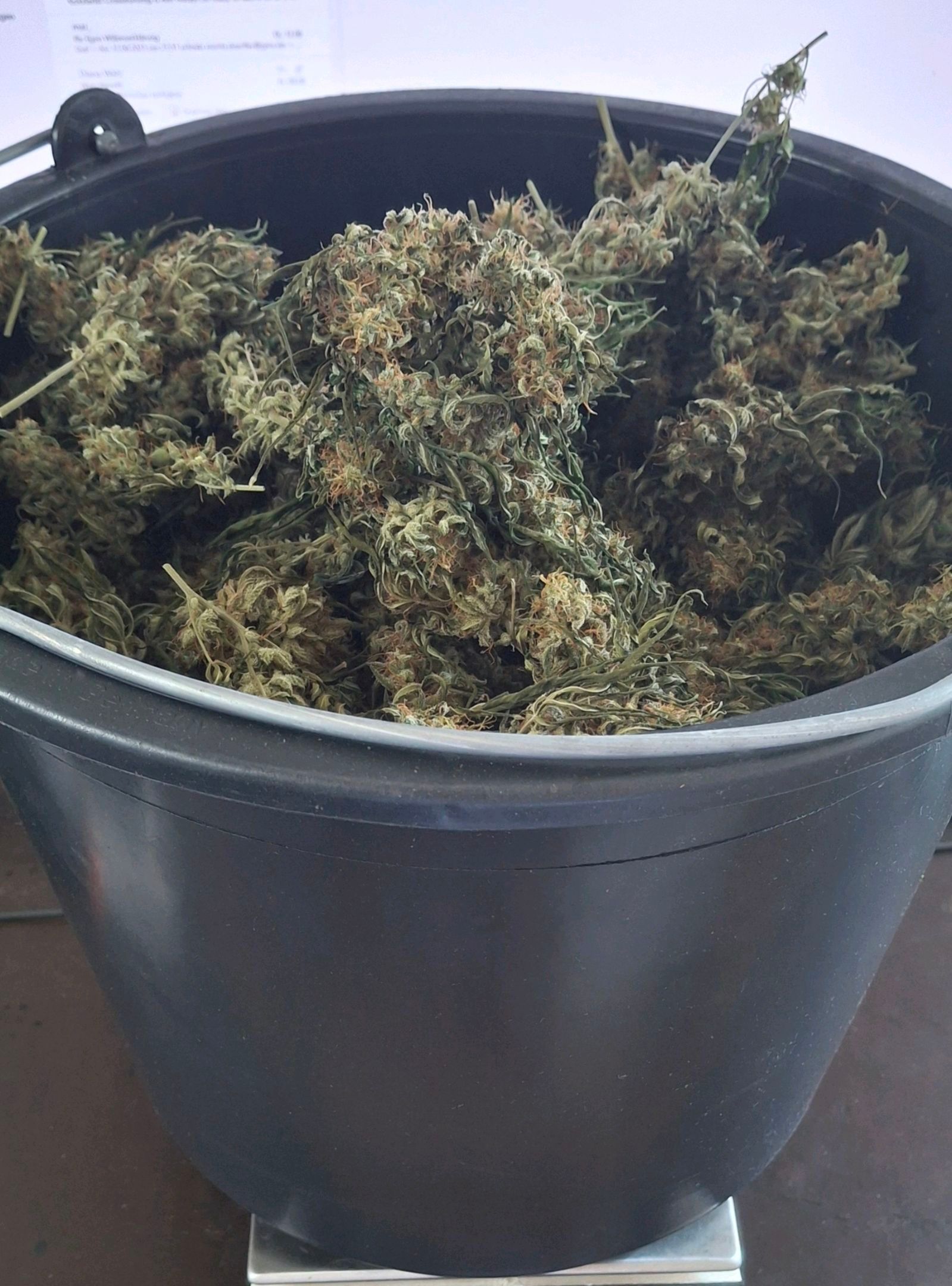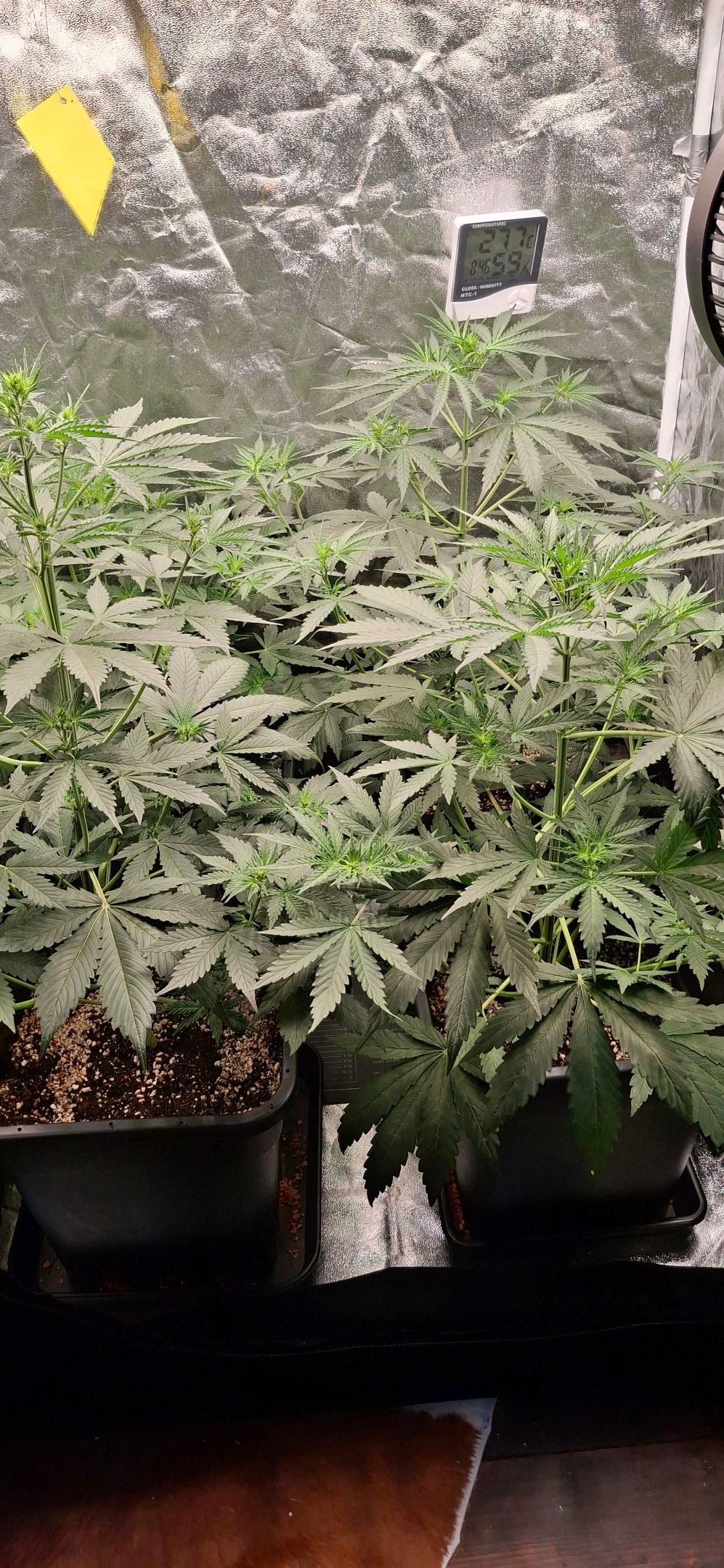 Nach 24h abgeschnitten, große Blätter entfernt und für die nächste Woche zum trocknen im Abluftzelt aufgehängt