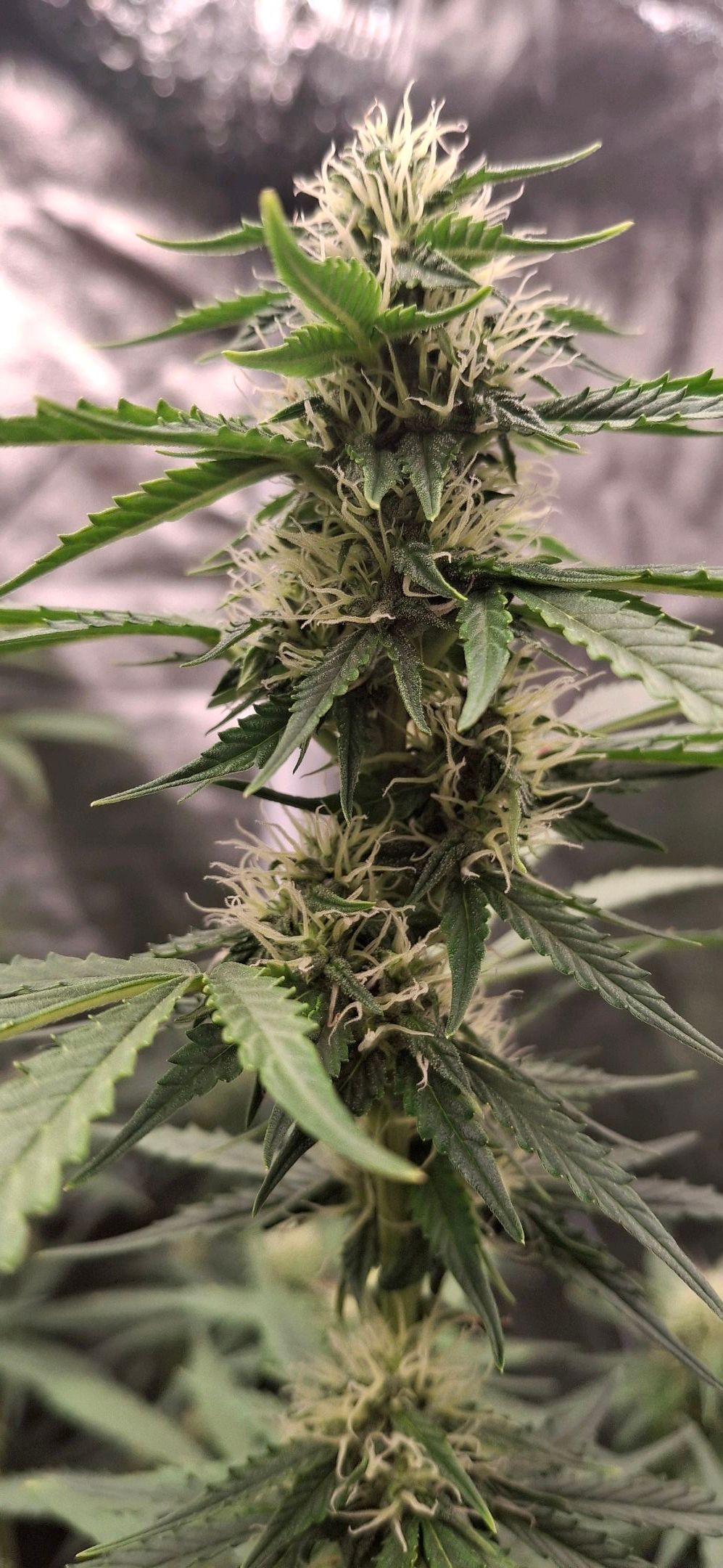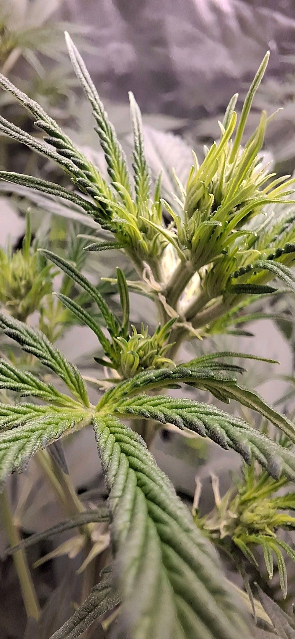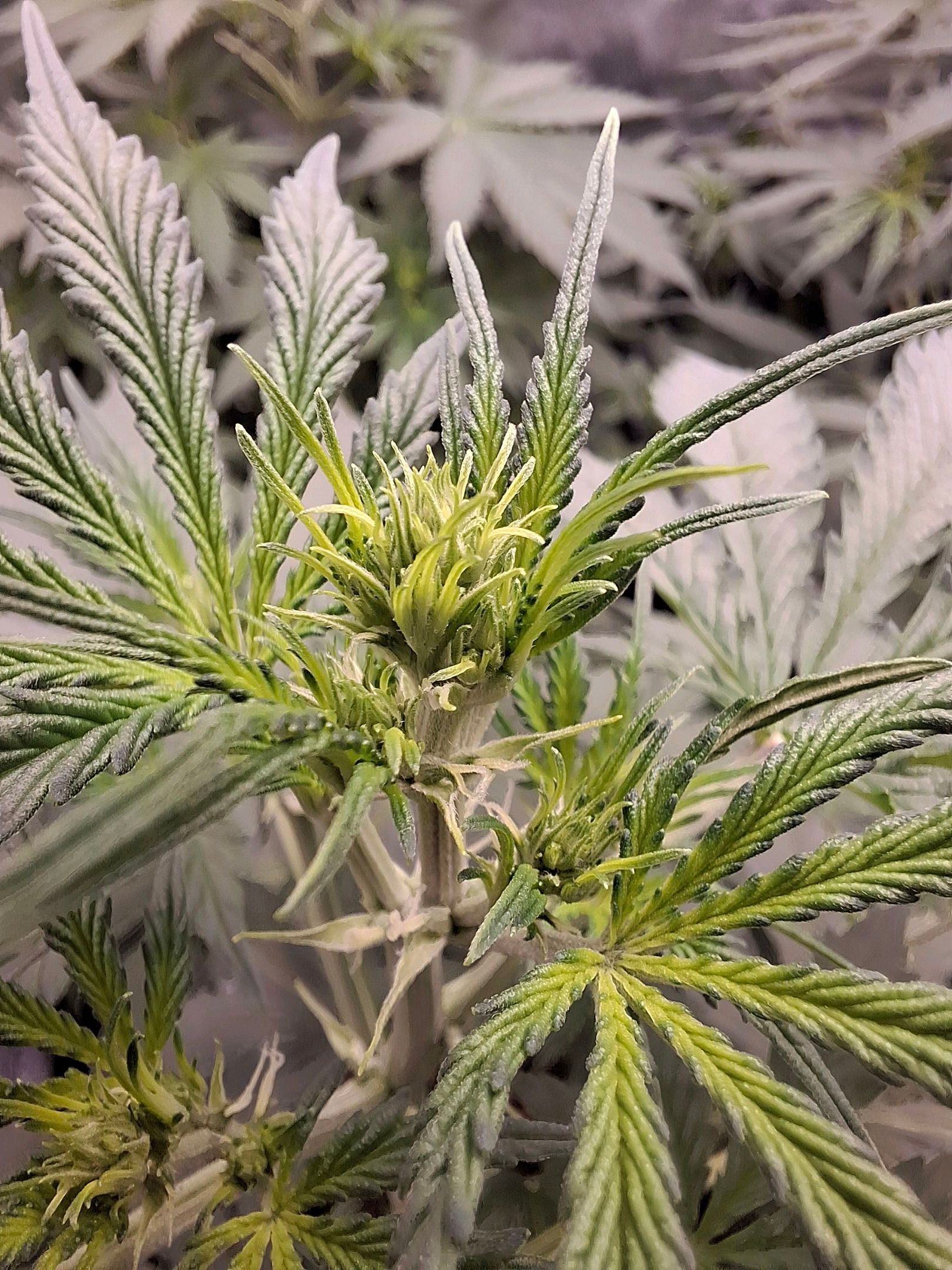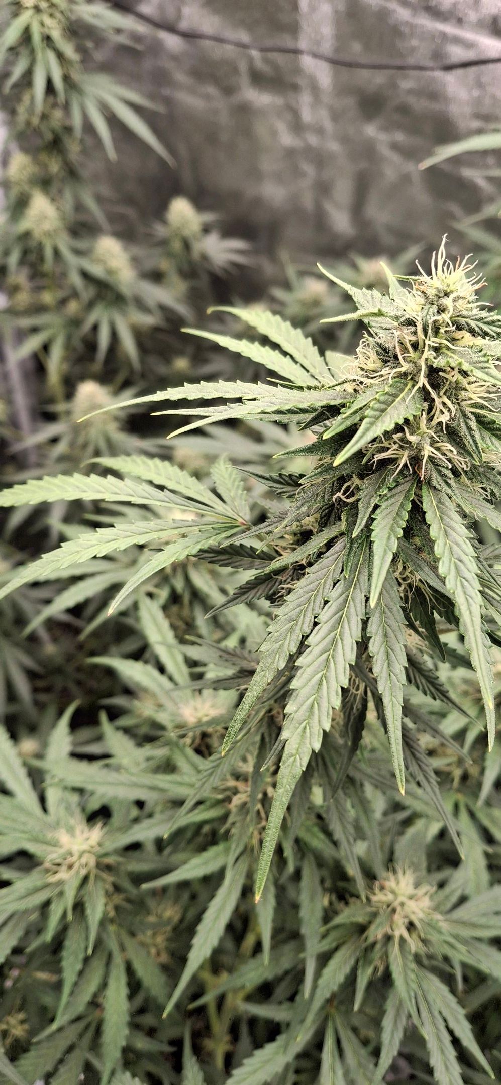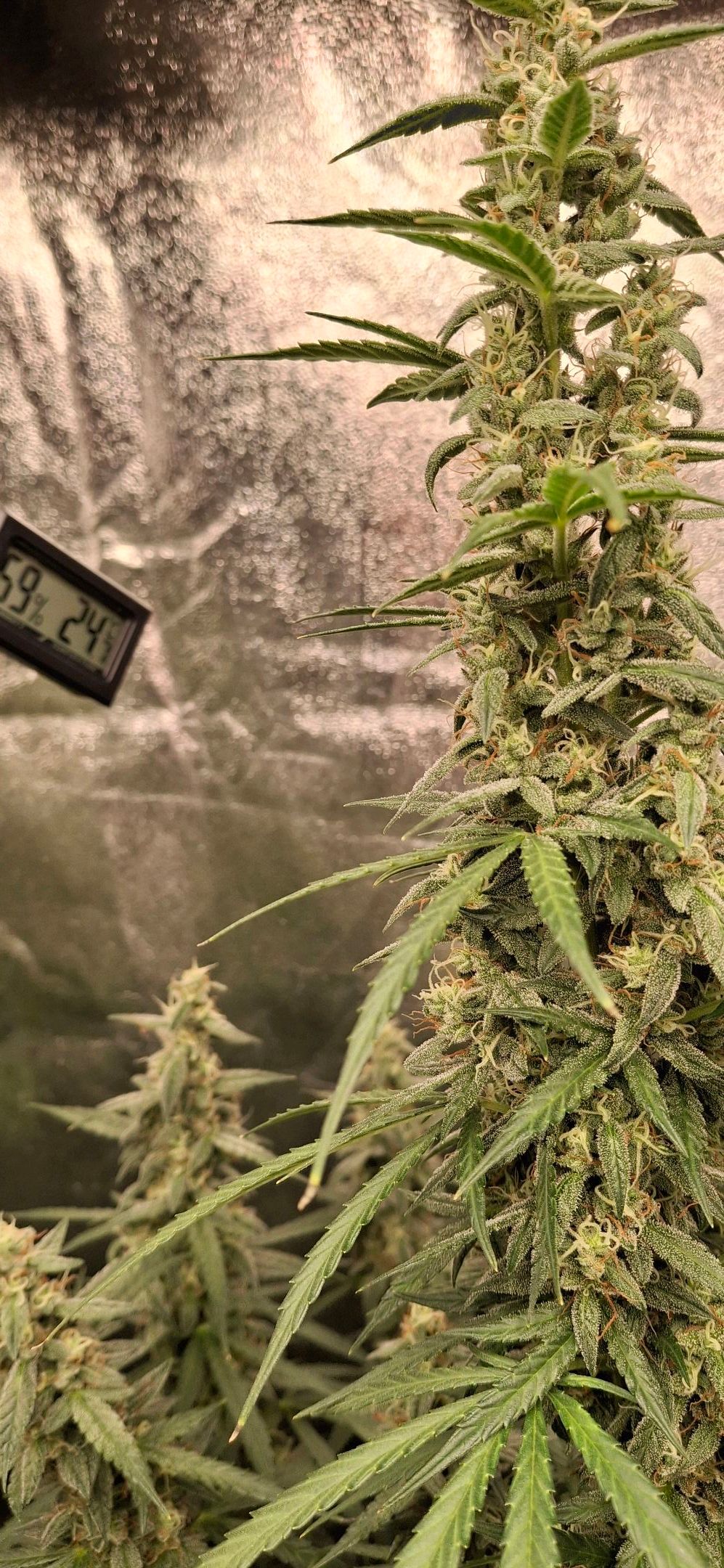 Nach 24h abgeschnitten, große Blätter entfernt und für die nächste Woche zum trocknen im Abluftzelt aufgehängt