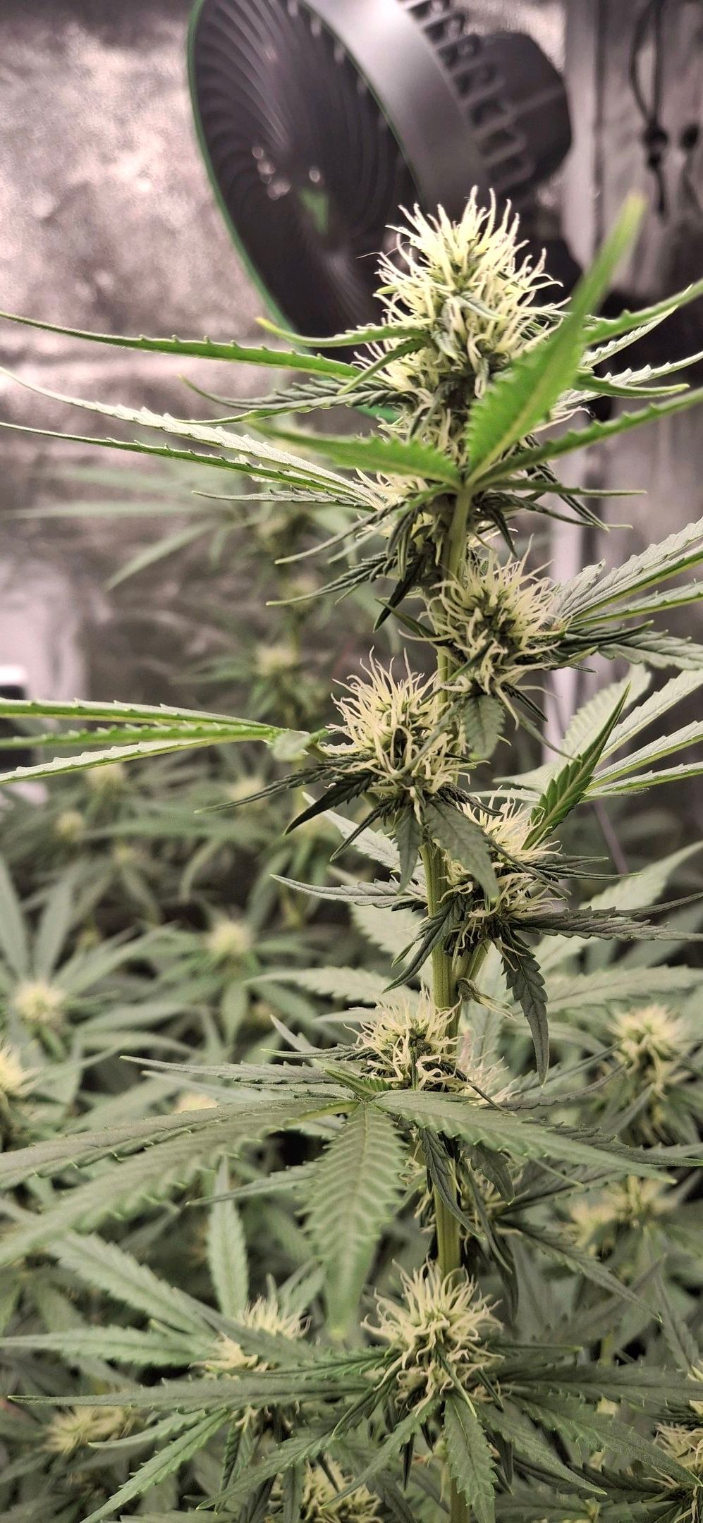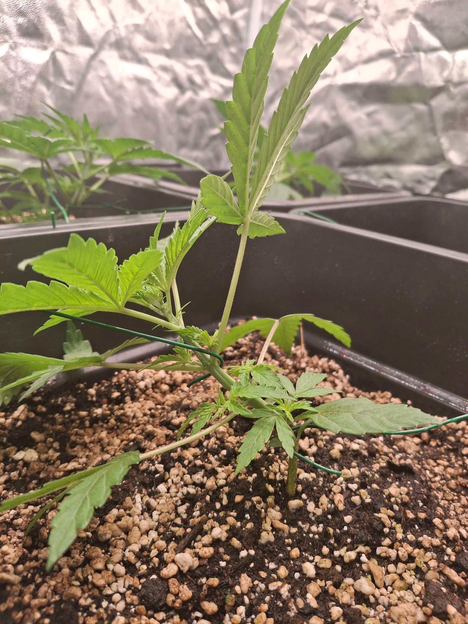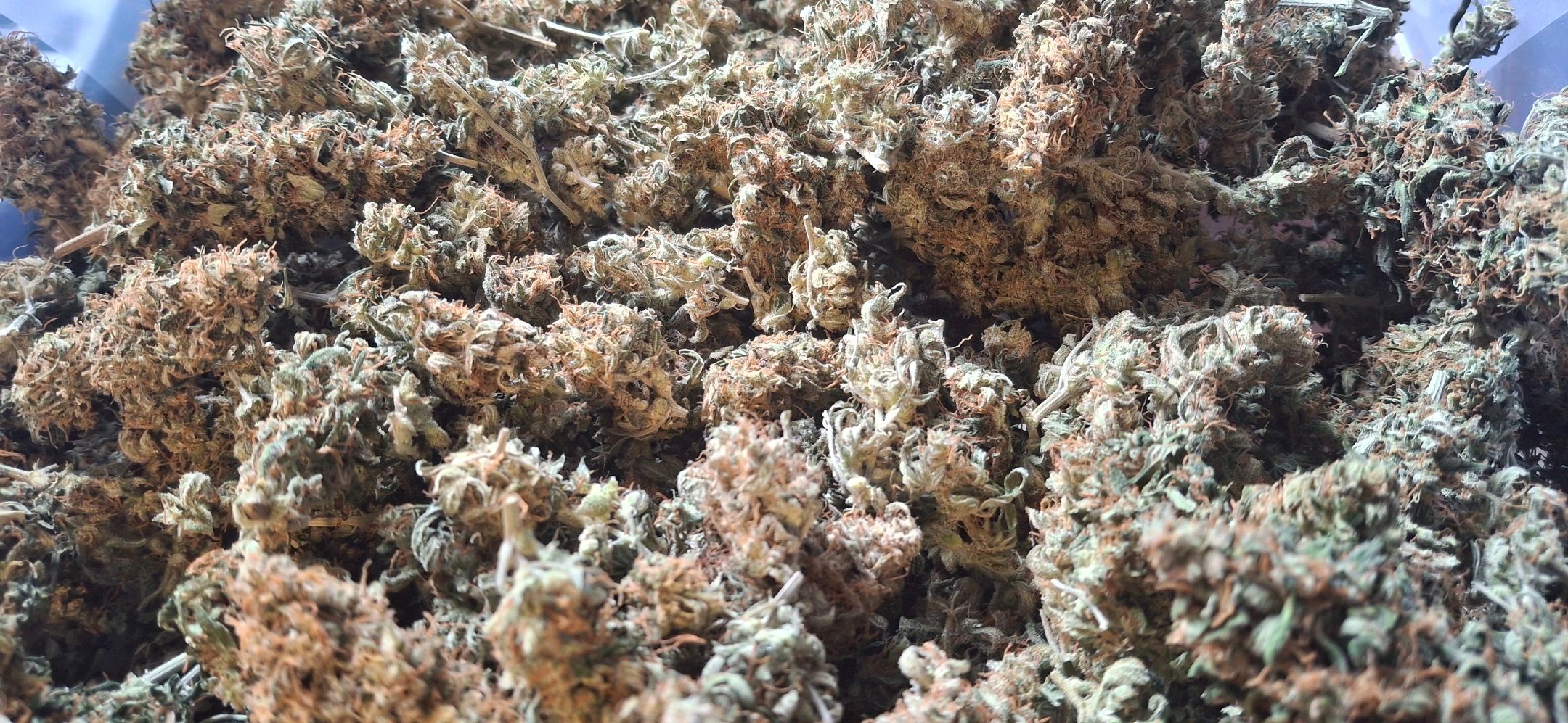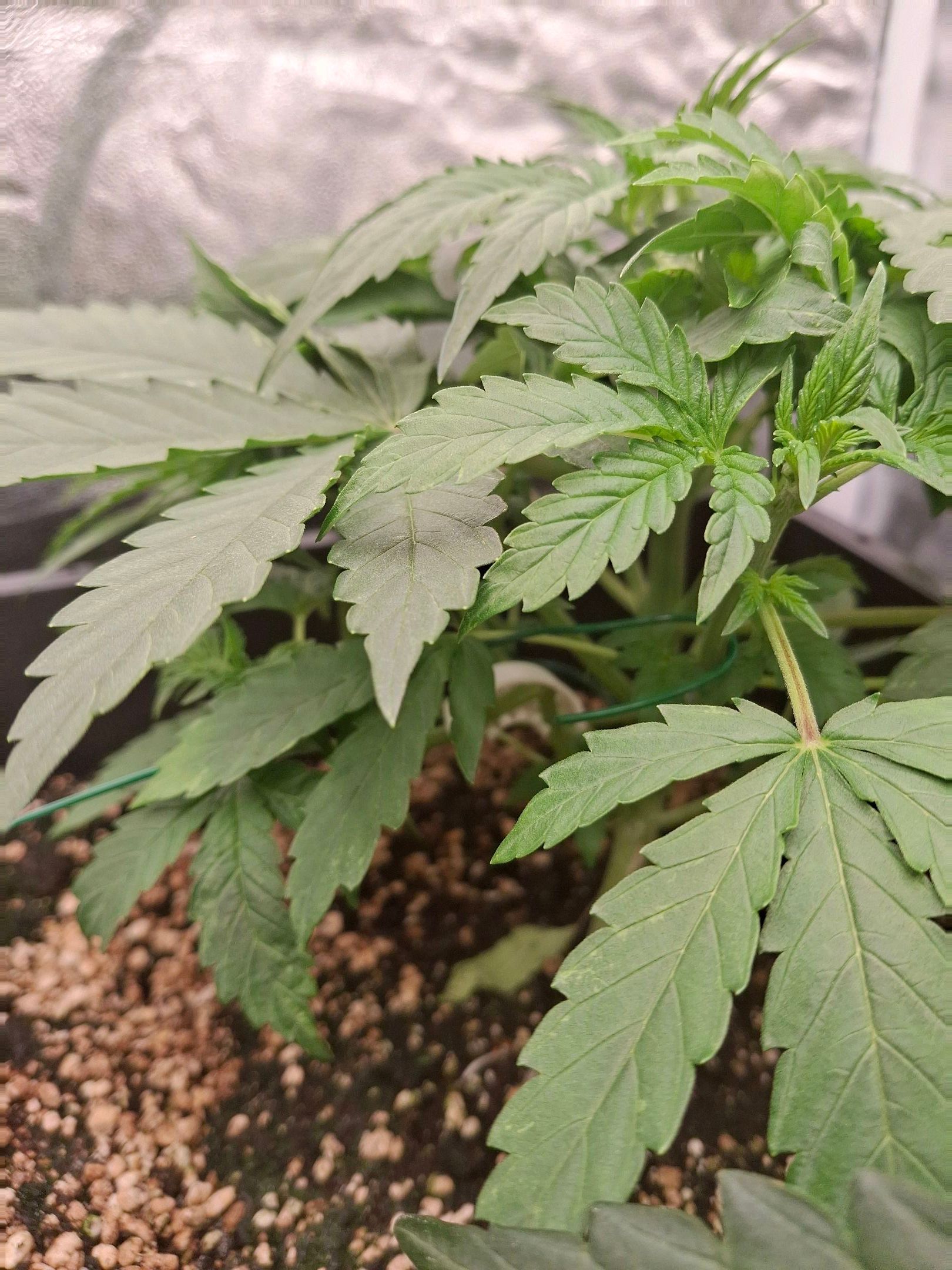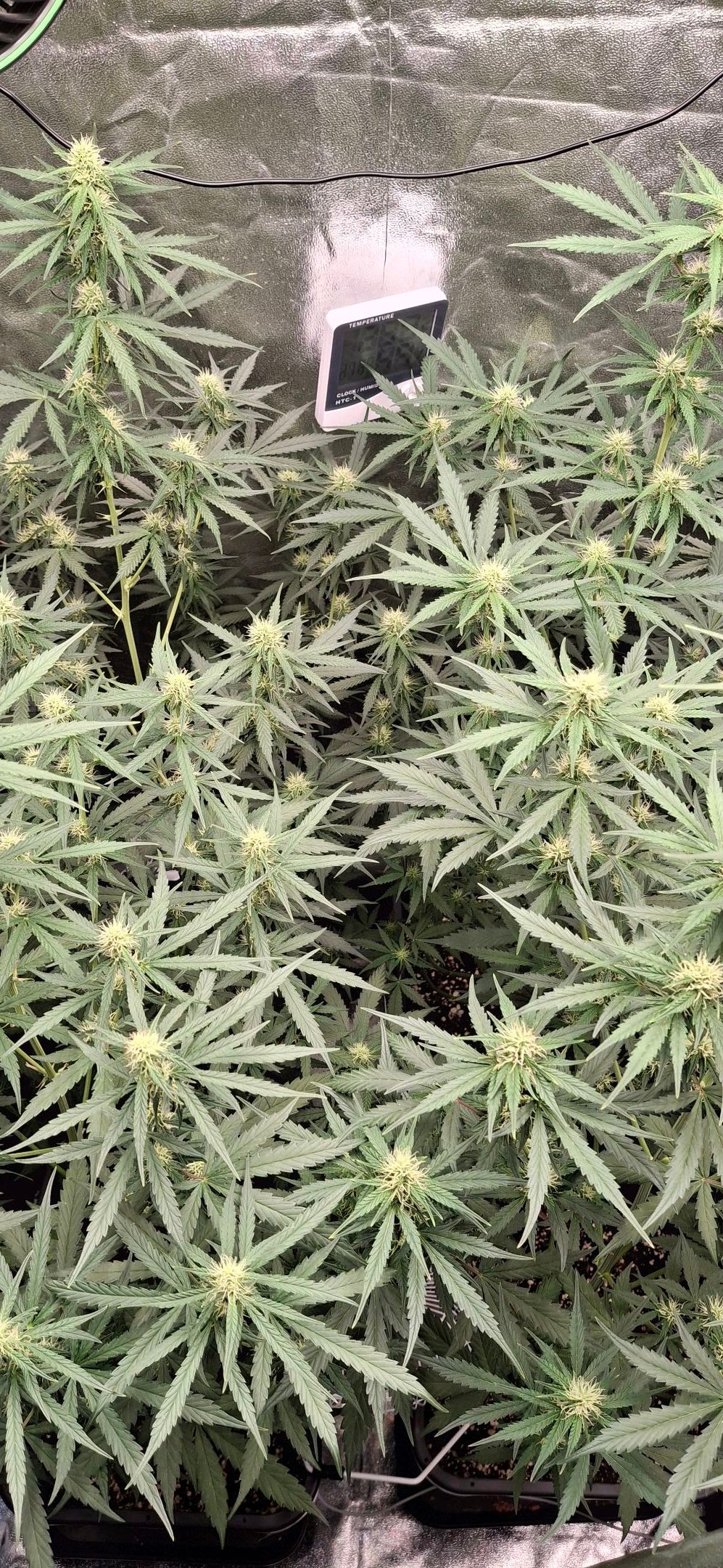 Nach 24h abgeschnitten, große Blätter entfernt und für die nächste Woche zum trocknen im Abluftzelt aufgehängt