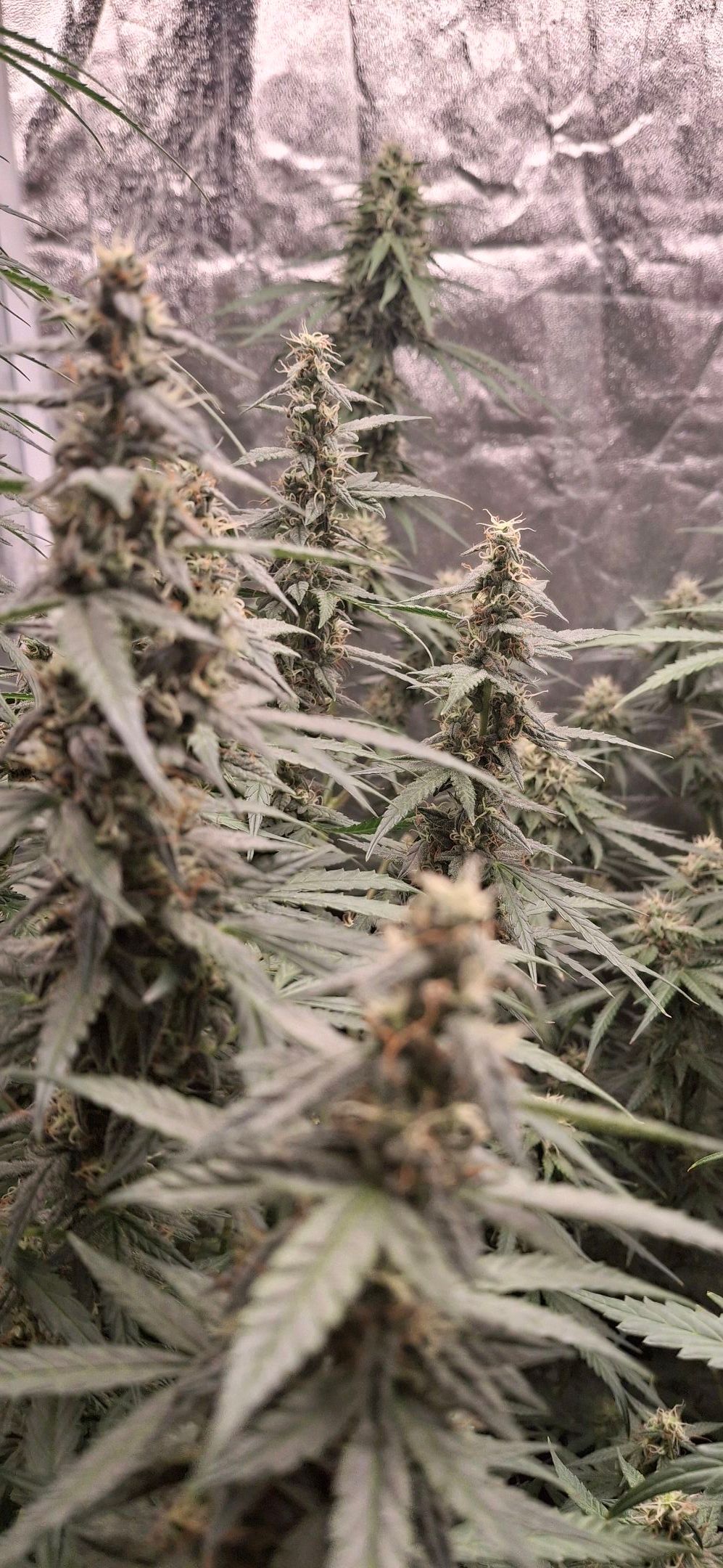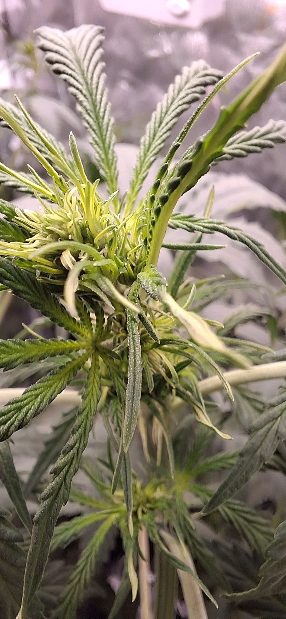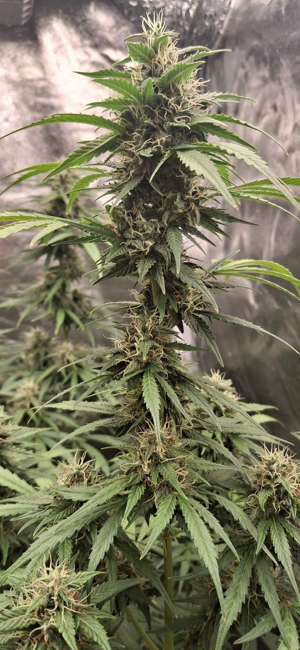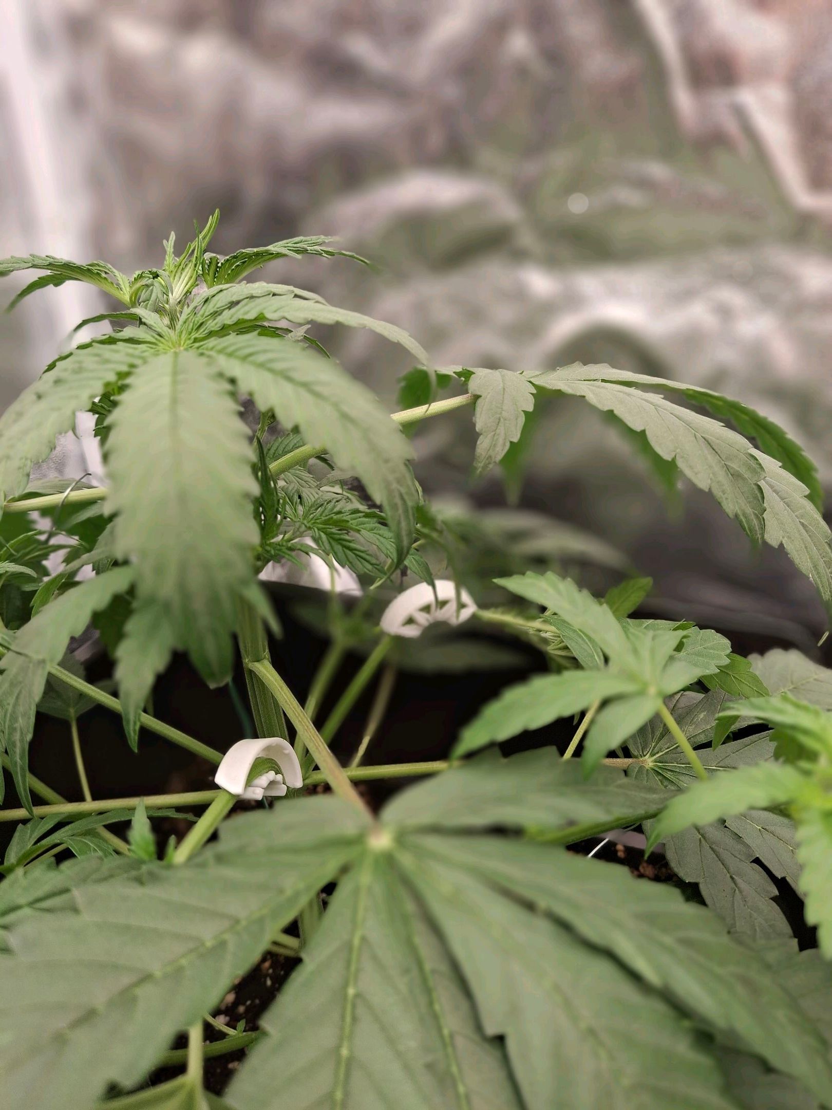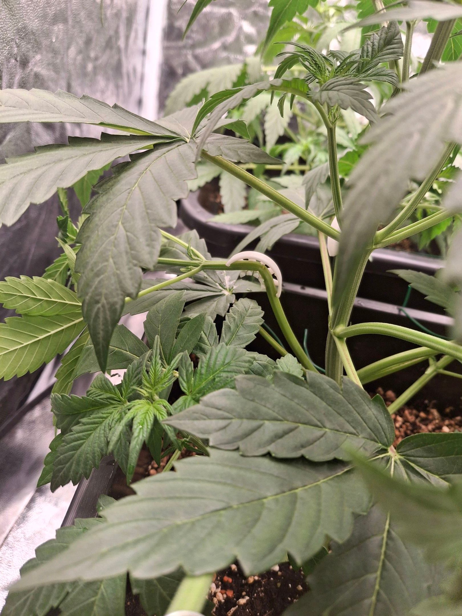 Nach 24h abgeschnitten, große Blätter entfernt und für die nächste Woche zum trocknen im Abluftzelt aufgehängt