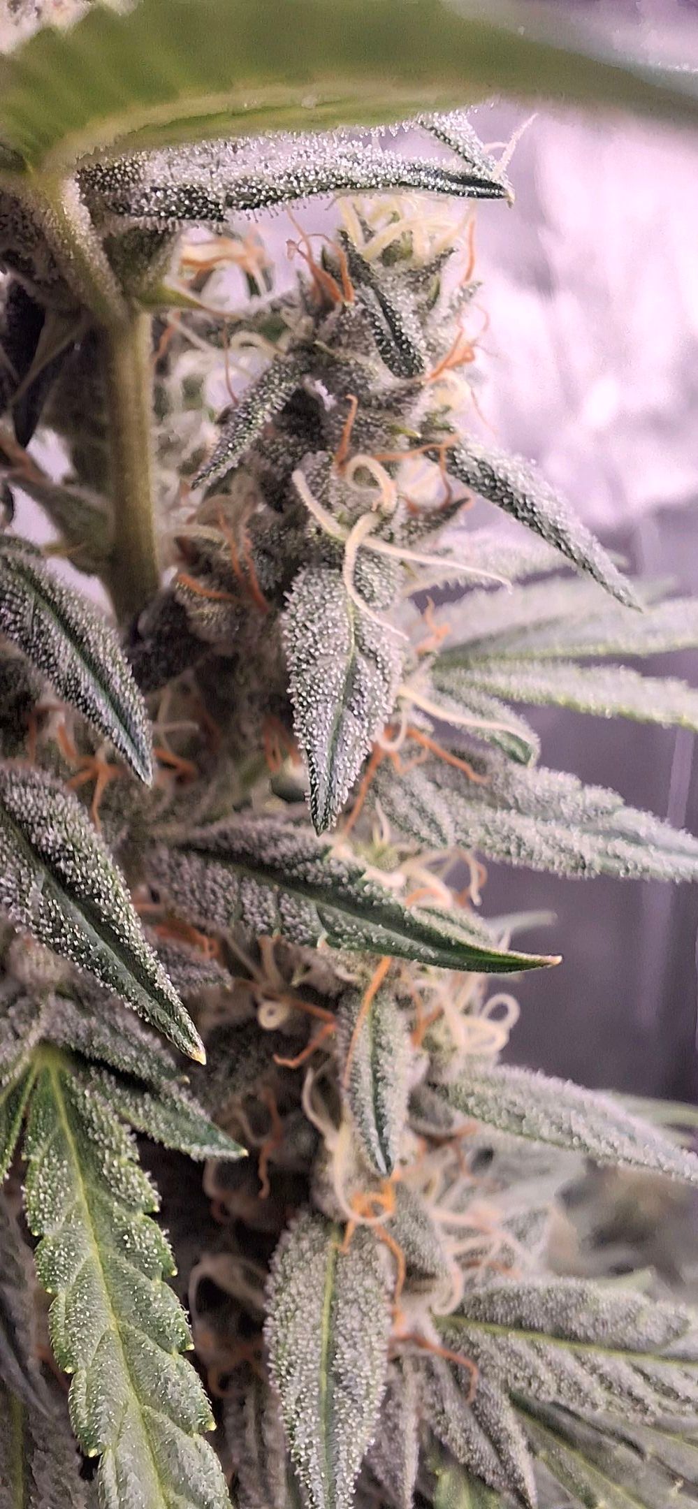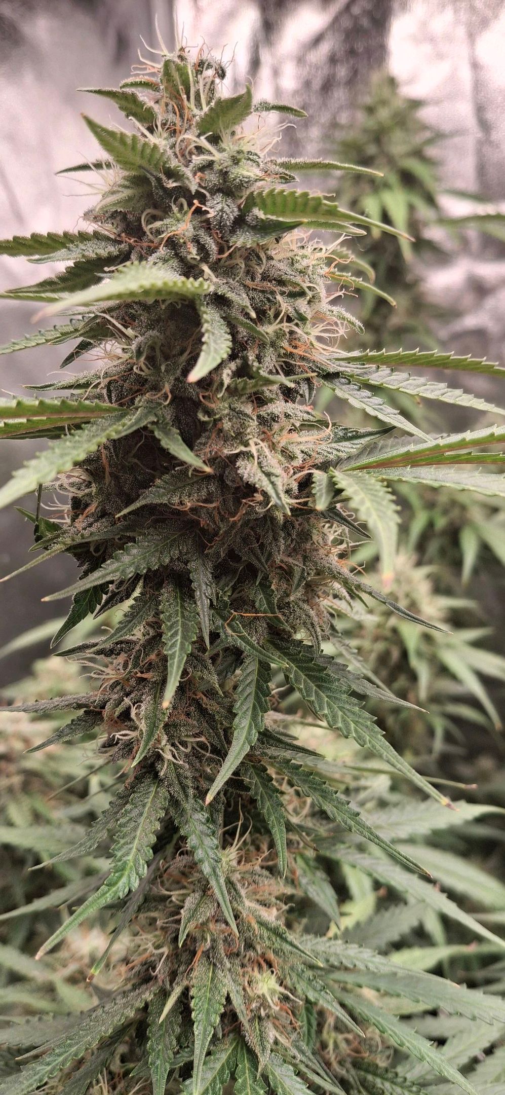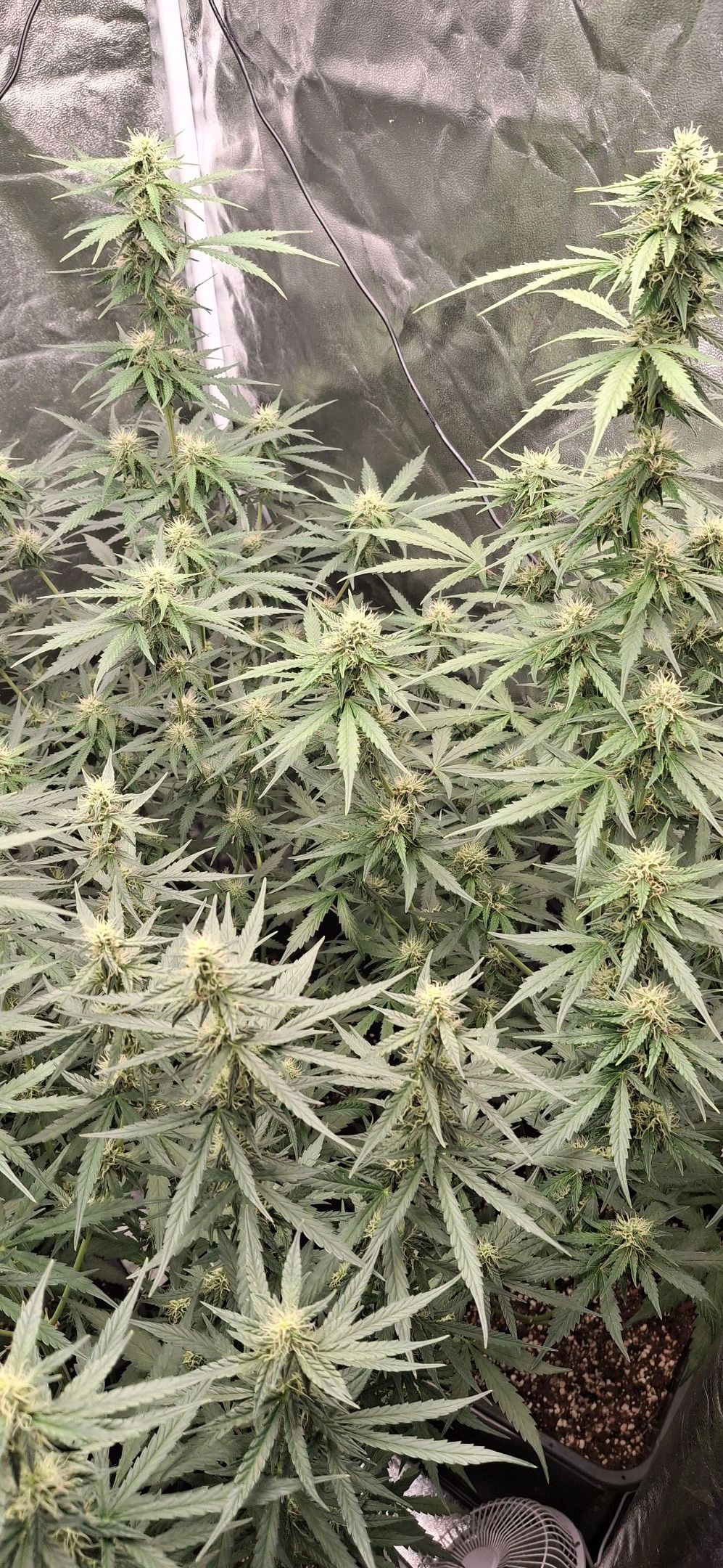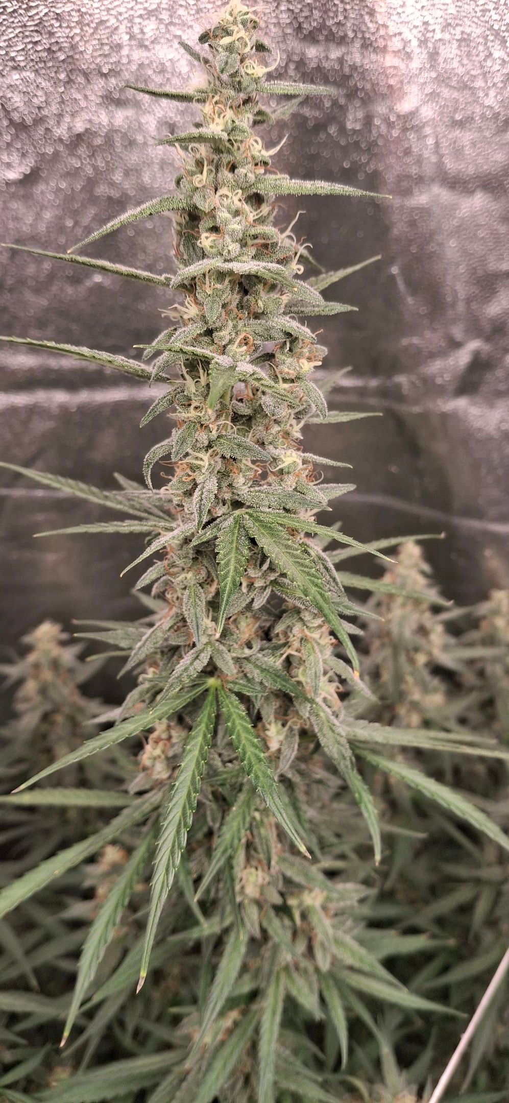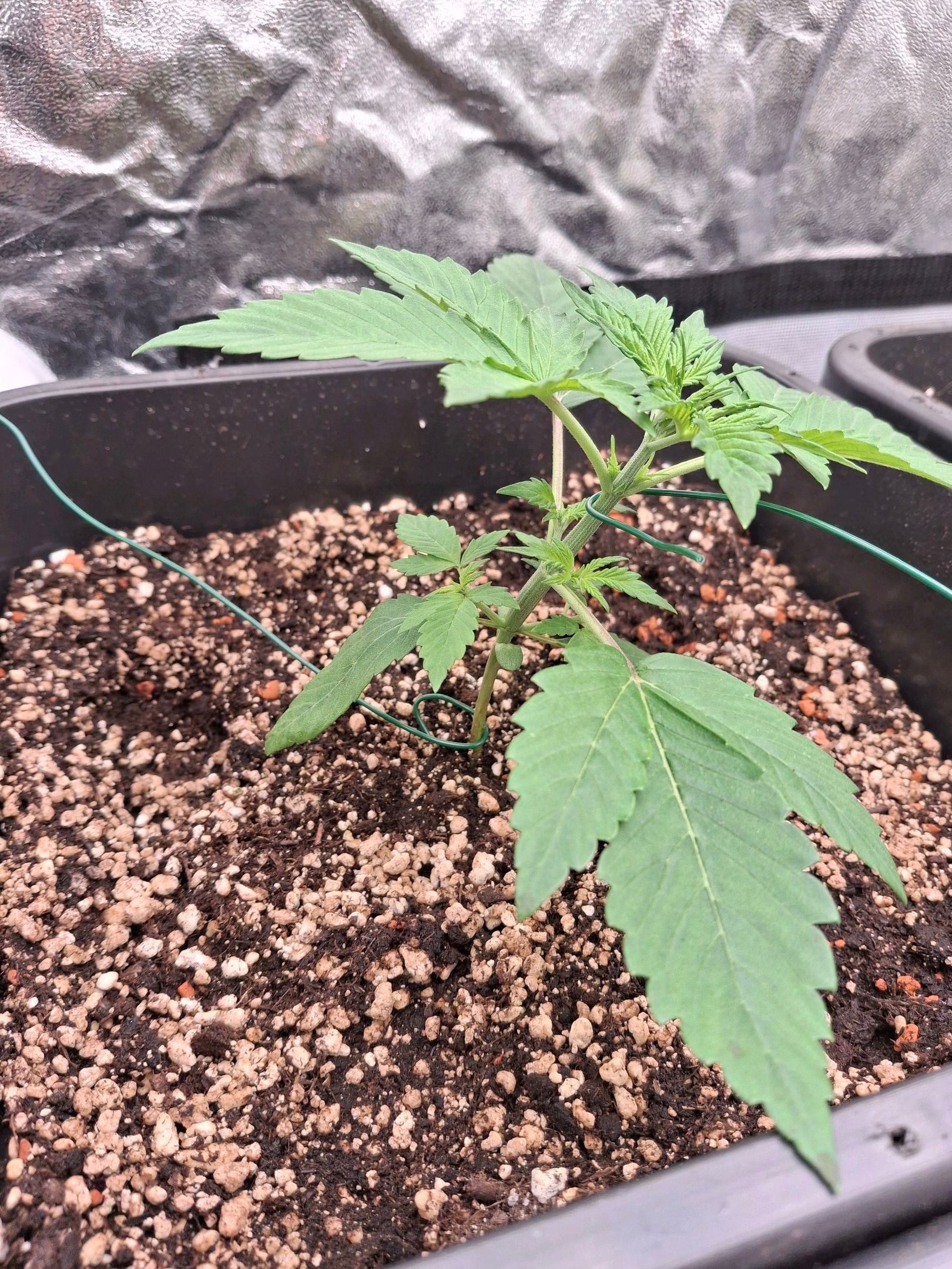Nach 24h abgeschnitten, große Blätter entfernt und für die nächste Woche zum trocknen im Abluftzelt aufgehängt